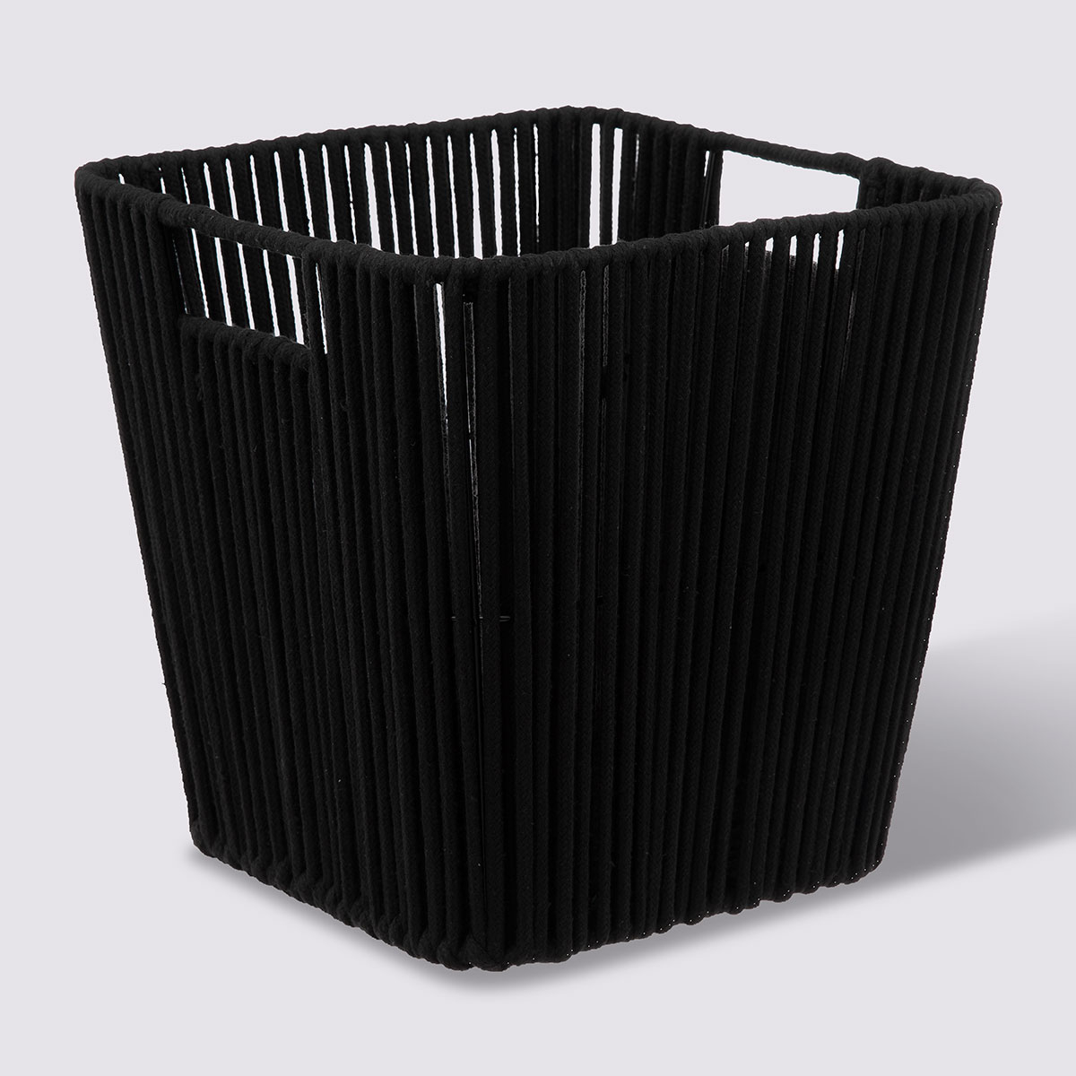 Καλάθι αποθήκευσης μεγάλο σε μαύρο χρώμα. Διαθέτει χερούλια για εύκολη μεταφορά. Είναι κατασκευασμένο από βαμβακερό σχοινί, με μεταλλικό σκελετό. Μπορείτε να το χρησιμοποιήσετε σαν αποθηκευτικό χώρο σε ένα ράφι ή σε όποιο σημείο του σπιτιού επιθυμείτε. Χωρητικότητα 19lt.