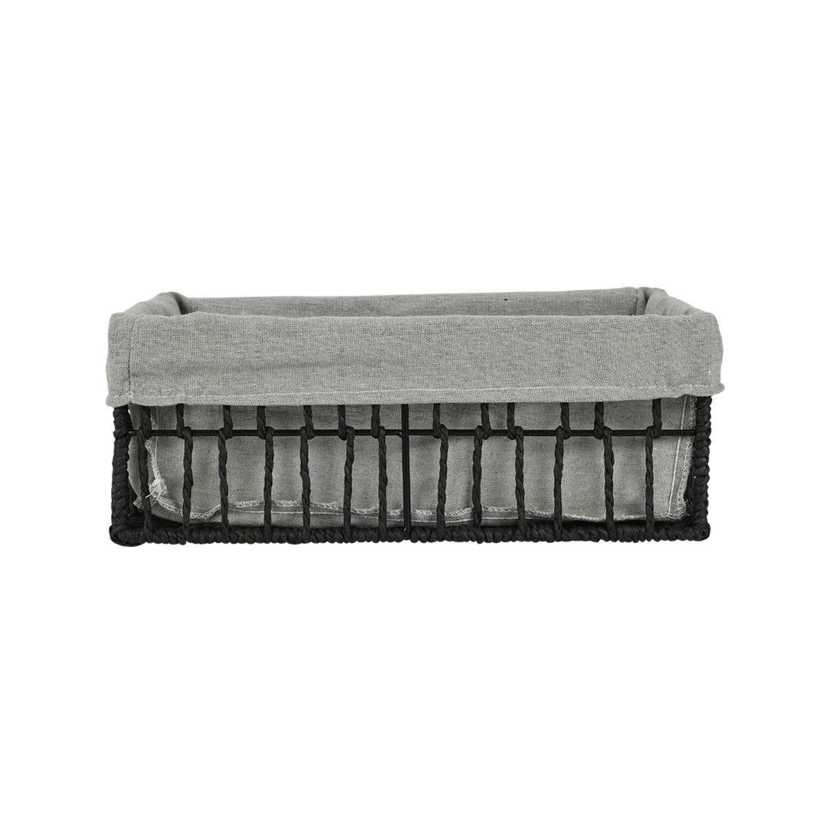 Καλάθι αποθήκευσης από την εταιρεία εstia. Είναι κατασκευασμένο από χάρτινο υλικό paper rope σε μαύρο χρώμα. Διαθέτει υφασμάτινη επένδυση σε γκρι χρώμα. Συνδυάστε το με τα υπόλοιπα μεγέθη της ίδιας σειράς για ένα ολοκληρωμένο αποτέλεσμα.