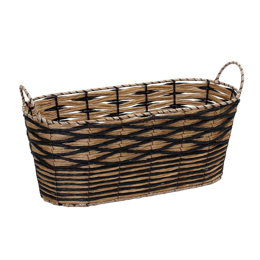 Καλάθι αποθήκευσης σε οβάλ σχήμα από την εταιρεία Espiel. Είναι κατασκευασμένο από φυσική ψάθα σε μπεζ χρώμα με μαύρο σχέδιο και μεταλλικό σκελετό. Διαθέτει λαβές για εύκολη μεταφορά. Ιδανικό καλάθι για να κρατήσετε οργανωμένα τα αντικείμενα σας.