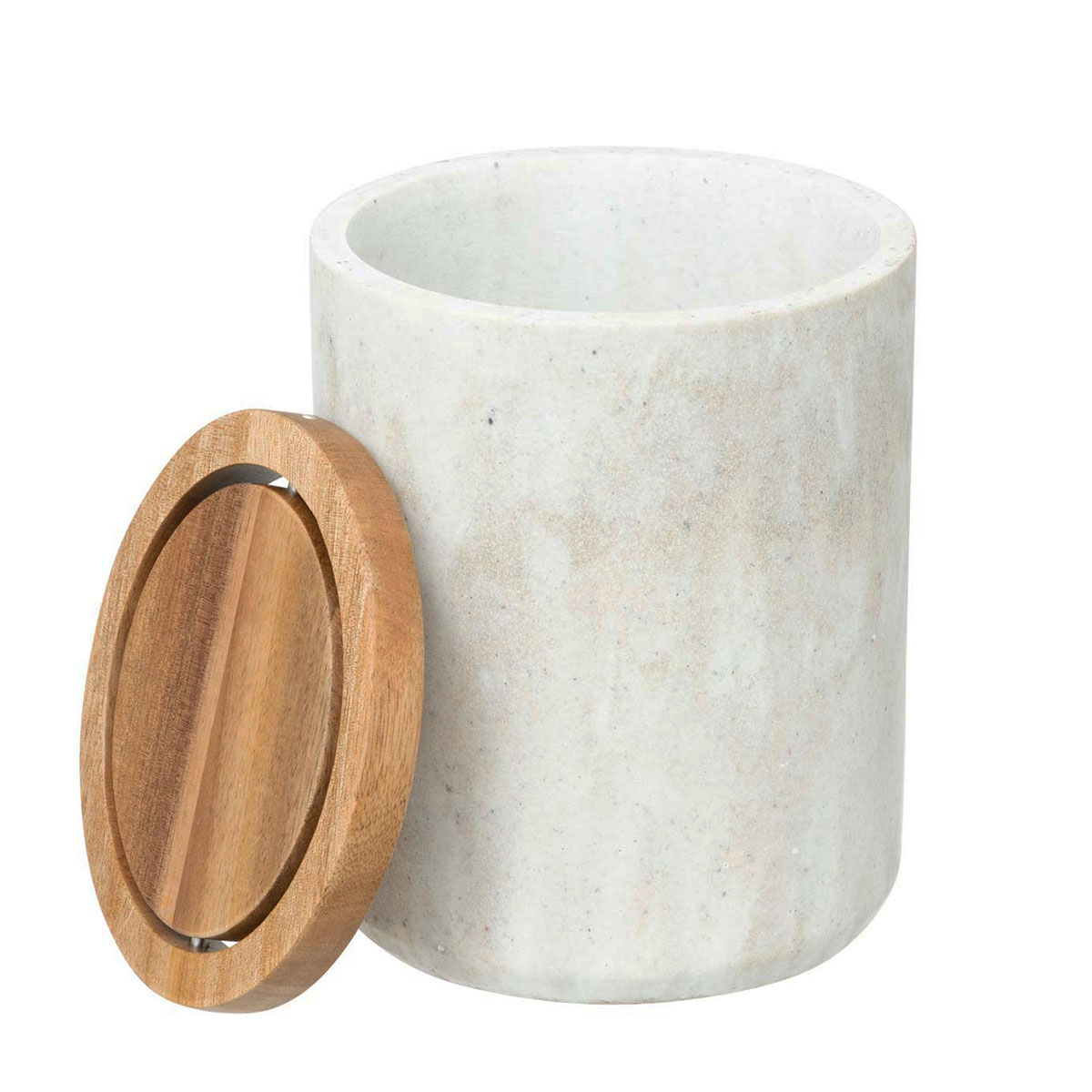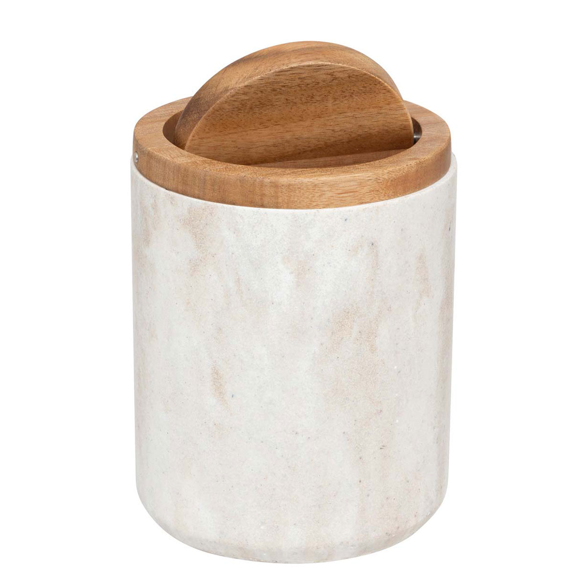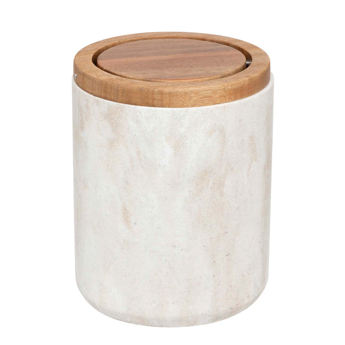 Καλάθι απορριμμάτων σε εκρού χρώμα με εφέ μαρμάρου και μπεζ ξύλινη λεπτομέρεια. Είναι κατασκευασμένο από κεραμικό υλικό με μοντέρνο στυλ και διαθέτει παλλόμενο καπάκι. Χωρητικότητα: 1.5lt. Συνδυάστε το με τα υπόλοιπα προϊόντα του ίδιου σετ για ένα ολοκληρωμένο αποτέλεσμα.