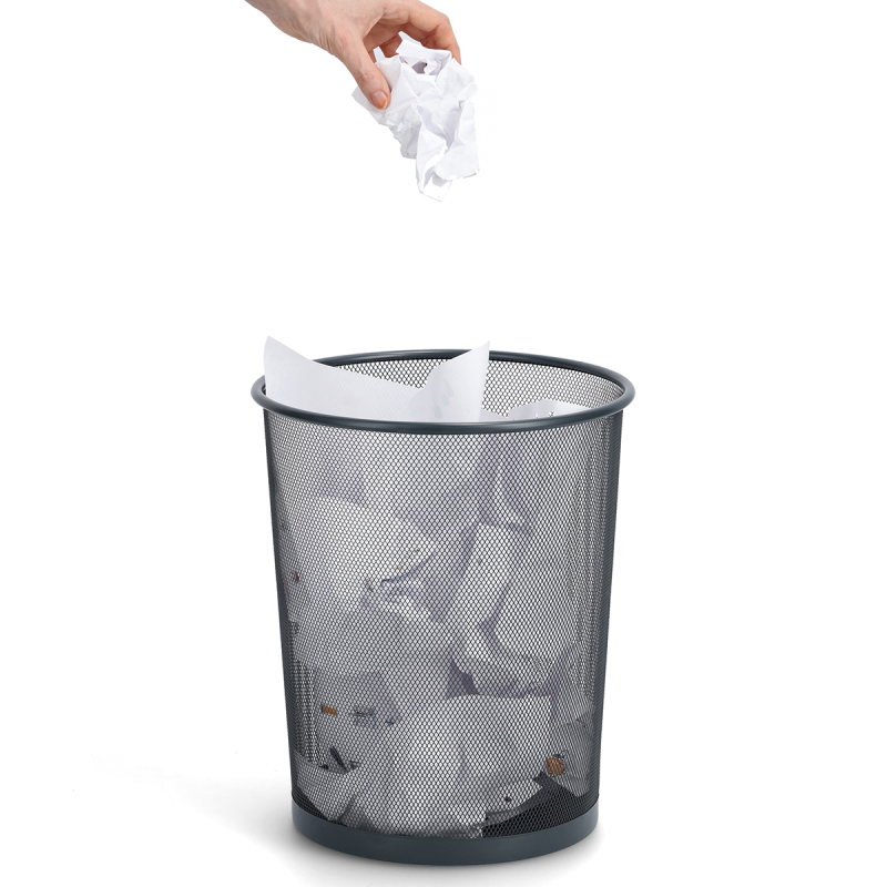Ανοικτό καλάθι απορριμμάτων με διάτρητο σχέδιο και στρογγυλό σχήμα. Είναι κατασκευασμένο από μεταλλικό υλικό σε ανθρακί χρώμα. Επιτρέπει την εύκολη ρίψη απορριμμάτων χωρίς να χρειάζεται να αγγίξει κανείς το καλάθι. Ιδανικό καλάθι για το γραφείο ή την κουζίνα σας. Συνδυάστε το με τα υπόλοιπα προϊόντα της ίδιας συλλογής για ένα ολοκληρωμένο αποτέλεσμα.