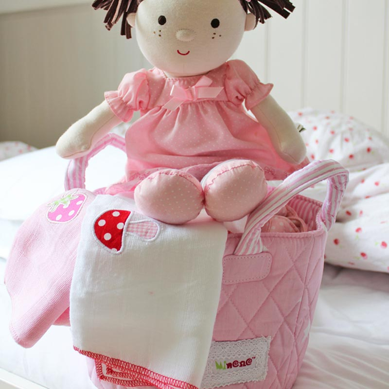 Καλαθάκι καλλυντικών σε ροζ χρώμα, λευκό χρώμα και σχέδιο αστεράκια από την εταιρία Minene. Είναι υφασμάτινο από 100% βαμβάκι χωρίς αζοχρώματα και ιδανικό για το παιδικό δωμάτιο, το σαλόνι ή και το μπάνιο. Ιδανικό για καλλυντικά στο μπάνιο, πάνες, παιχνίδια, κοκαλάκια για τα μαλλιά ή ότι άλλο θελήσετε. Συνδυάστε το με τα υπόλοιπα είδη της ίδιας σειράς για ένα ολοκληρωμένο αποτέλεσμα.