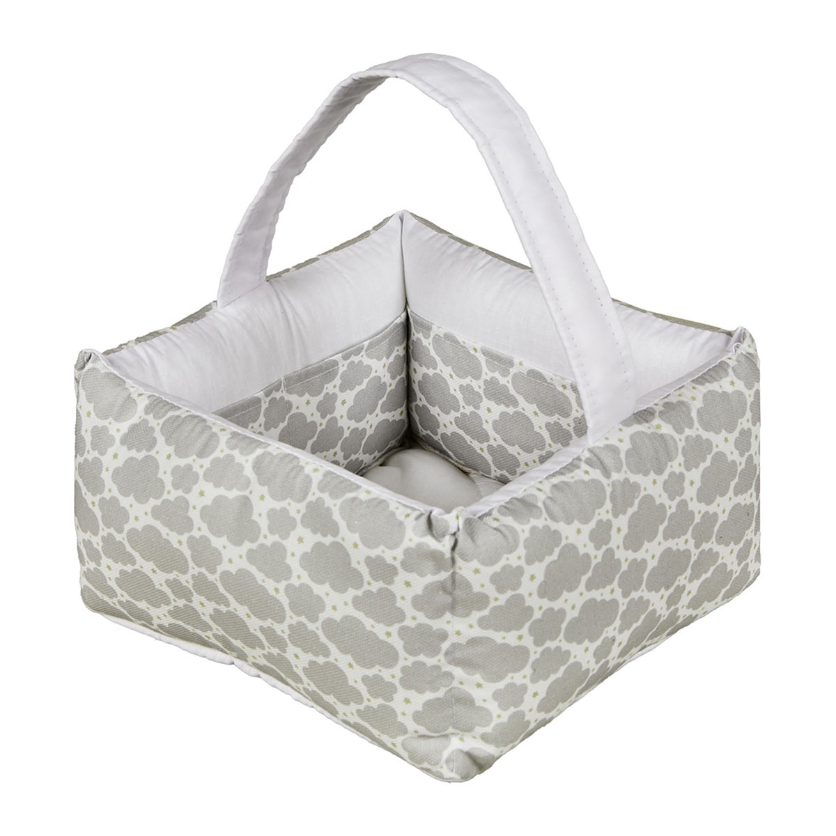 Καλαθάκι καλλυντικών από την εταιρεία Κόσμος του Μωρού σε γκρι χρώμα με λευκές λεπτομέρειες και μοντέρνο σχέδιο. Κατάλληλο για να εξοπλίσετε το έπιπλο της αλλαξιέρας με αποθηκευτικό χώρο για τις κρέμες και τα μωρομάντηλα του μωρού σας. Η εξωτερική του επένδυση είναι από 100% βαμβακερό ύφασμα και η γέμιση από πολυεστερική βάτα για να είναι σταθερό. Πλένεται στο πλυντήριο στους 30 βαθμούς.