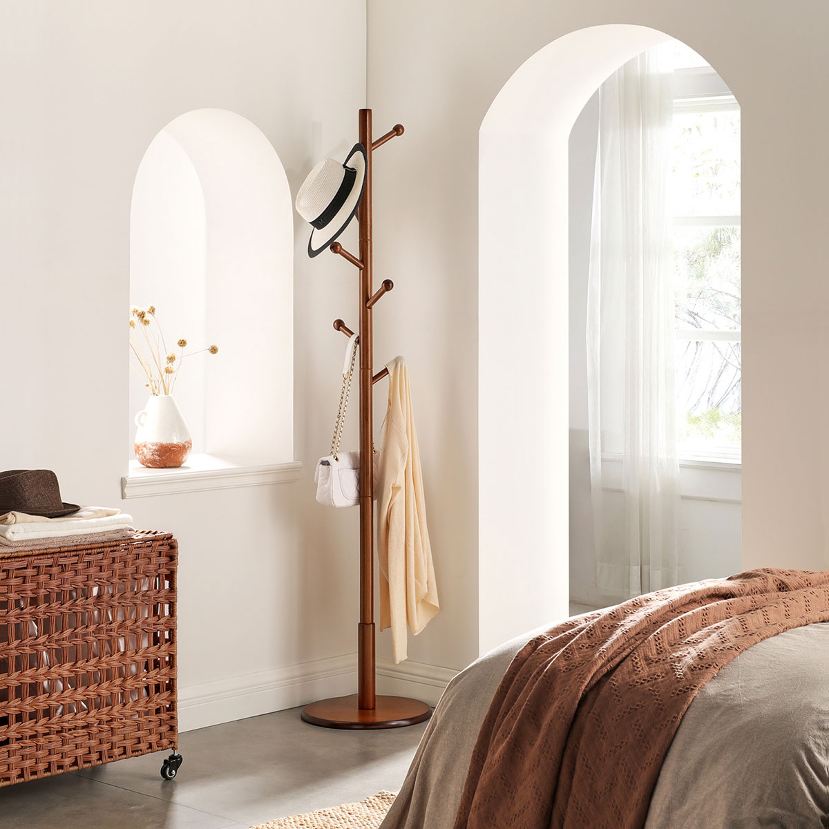 Καλόγερος ρούχων με μοντέρνο σχεδιασμό από την εταιρεία Vasagle. Είναι κατασκευασμένος από ξύλο σε καφέ χρώμα, με βάση από MDF. Διαθέτει 7 θέσεις κρεμάσματος για τα παλτό, τα κασκόλ, τις τσάντες ή ότι άλλο θέλετε. Έχει τη δυνατότητα να αφαιρεθεί ένα κομμάτι της βάσης για ανθρώπους με μικρότερο ύψος ή και για παιδιά. Ιδανικός για τοποθέτηση στην είσοδο, το χολ, το υπνοδωμάτιο, το παιδικό δωμάτιο. Μέγιστο βάρος αντοχής ανά κρεμάστρα: 3.3kg. Συνολικό μέγιστο βάρος αντοχής καλόγερου: 20kg. *Το προϊόν έρχεται αμοντάριστο και συναρμολογείται βάσει οδηγιών.*