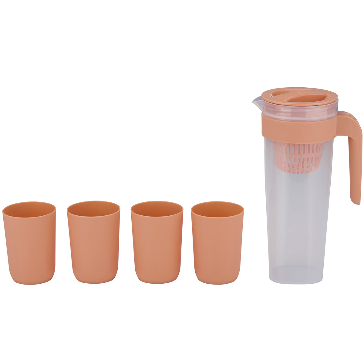Κανάτα Με Καπάκι & 4 Ποτήρια Νερού Πλαστικά (Σετ 5τμχ) Alpina 871125255649 Orange