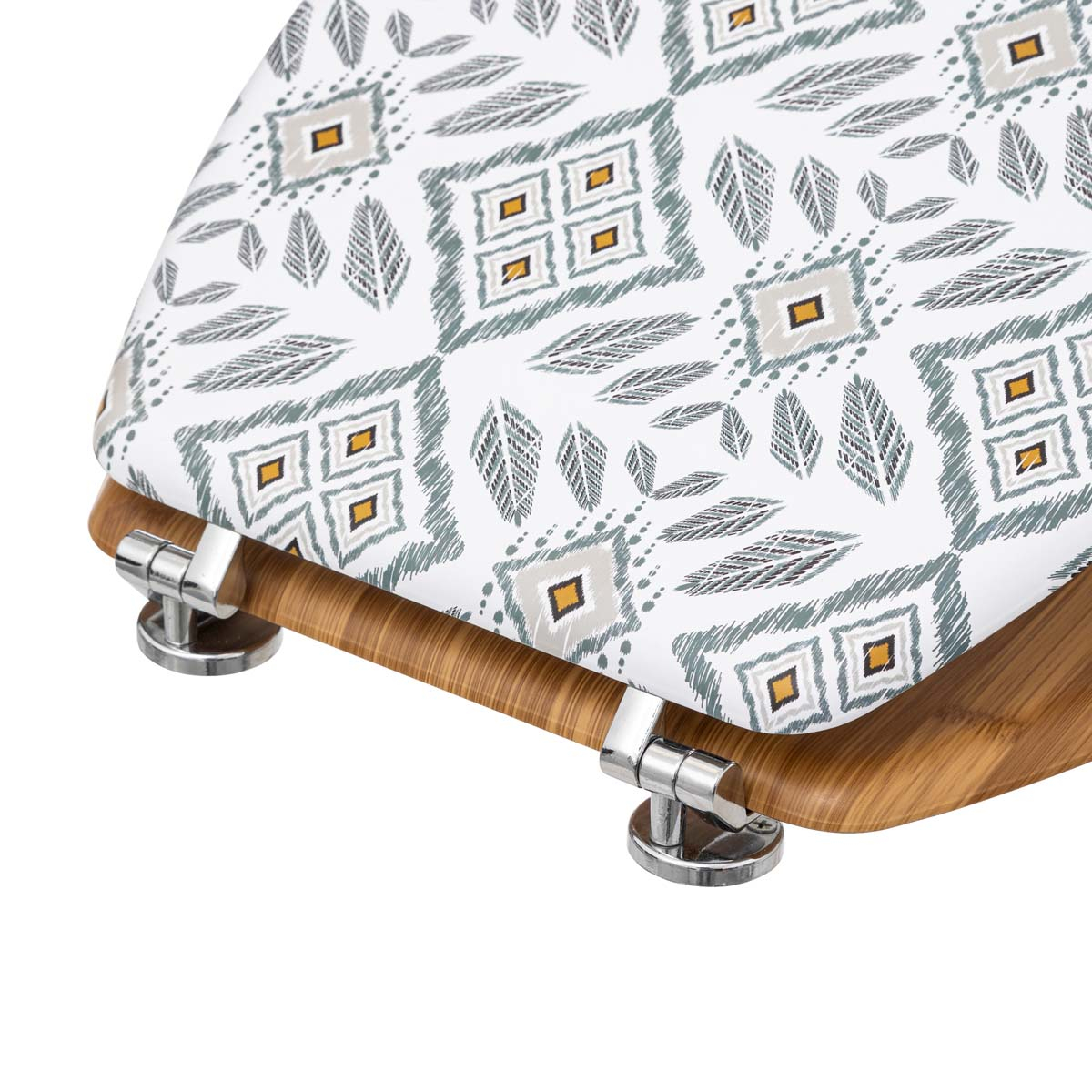Καπάκι λεκάνης κατασκευασμένο από μοριοσανίδα HDF. Έχει μοντέρνο σχέδιο σε λευκό χρώμα με γκρι λεπτομέρειες και μπεζ κάθισμα με εφέ ξύλου. Οι μεντεσέδες είναι σταθεροί, κατασκευασμένοι από ψευδάργυρο. Η απόσταση μεταξύ των μεντεσέδων είναι ρυθμιζόμενη από 12 έως 22εκ.
