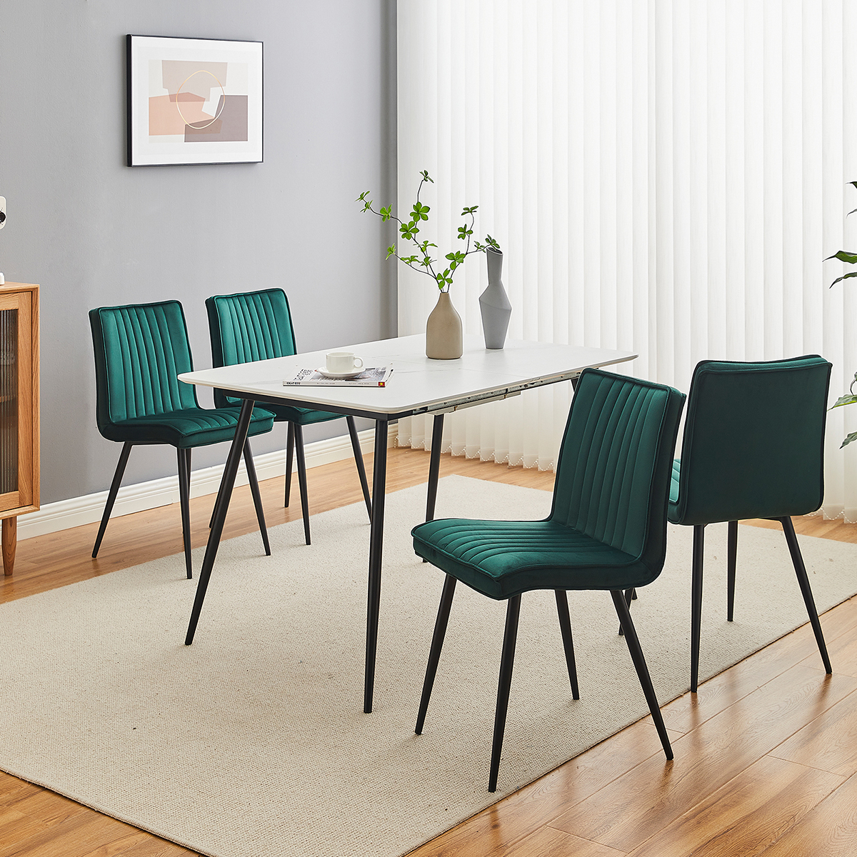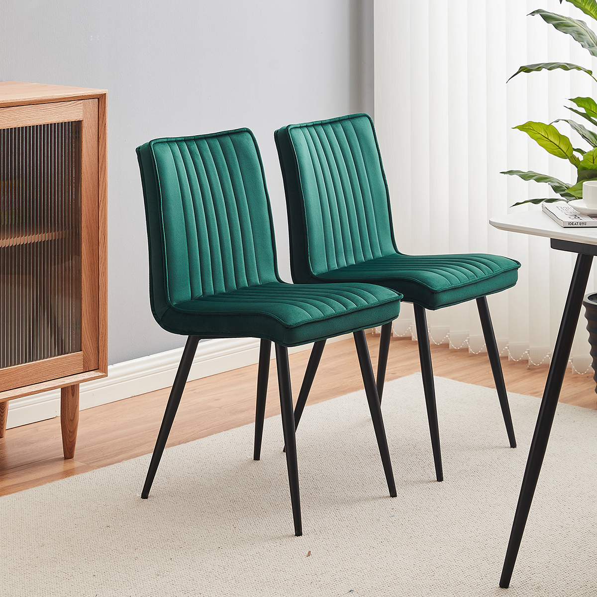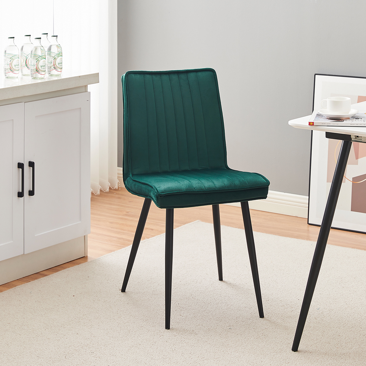 Καρέκλα με μοντέρνο σχεδιασμό που θα ταιριάξει μοναδικά στην τραπεζαρία ή την κουζίνα σας. Το κάθισμα είναι σε πράσινο χρώμα με κάθετες ραφές ενώ τα πόδια είναι σε μαύρο χρώμα. Από υψηλής ποιότητας υλικά που εξασφαλίζουν ανθεκτικότητα. Μπορεί να συνδυαστεί με τα περισσότερα στυλ διακόσμησης για να δημιουργήσετε τον χώρο που επιθυμείτε. Το προϊόν έρχεται αμοντάριστο και συναρμολογείται βάσει οδηγιών.