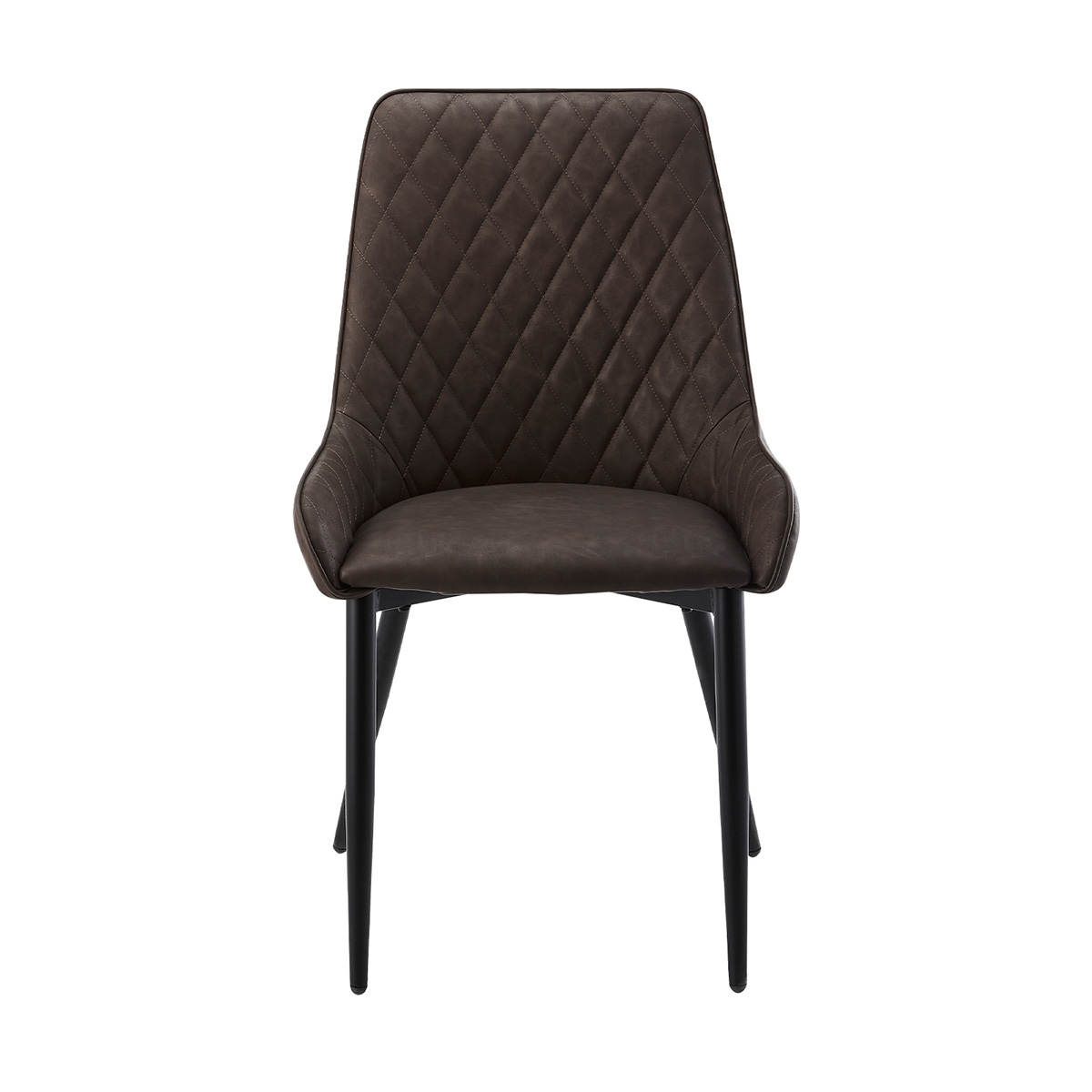 Καρέκλα με καθαρές γραμμές και σύγχρονη αισθητική, ιδανική για να ολοκληρώσει τον χώρο σας. Το κάθισμα είναι σε σκούρο καφέ χρώμα με ραφές στην πλάτη ενώ τα πόδια είναι μαύρα. Συνδυάζει κομψότητα και άνεση, προσθέτοντας χαρακτήρα στην τραπεζαρία ή την κουζίνα σας. Τα υψηλής ποιότητας υλικά κατασκευής της εξασφαλίζουν ανθεκτικότητα και μακροχρόνια χρήση. Το προϊόν έρχεται αμοντάριστο και συναρμολογείται βάσει οδηγιών.