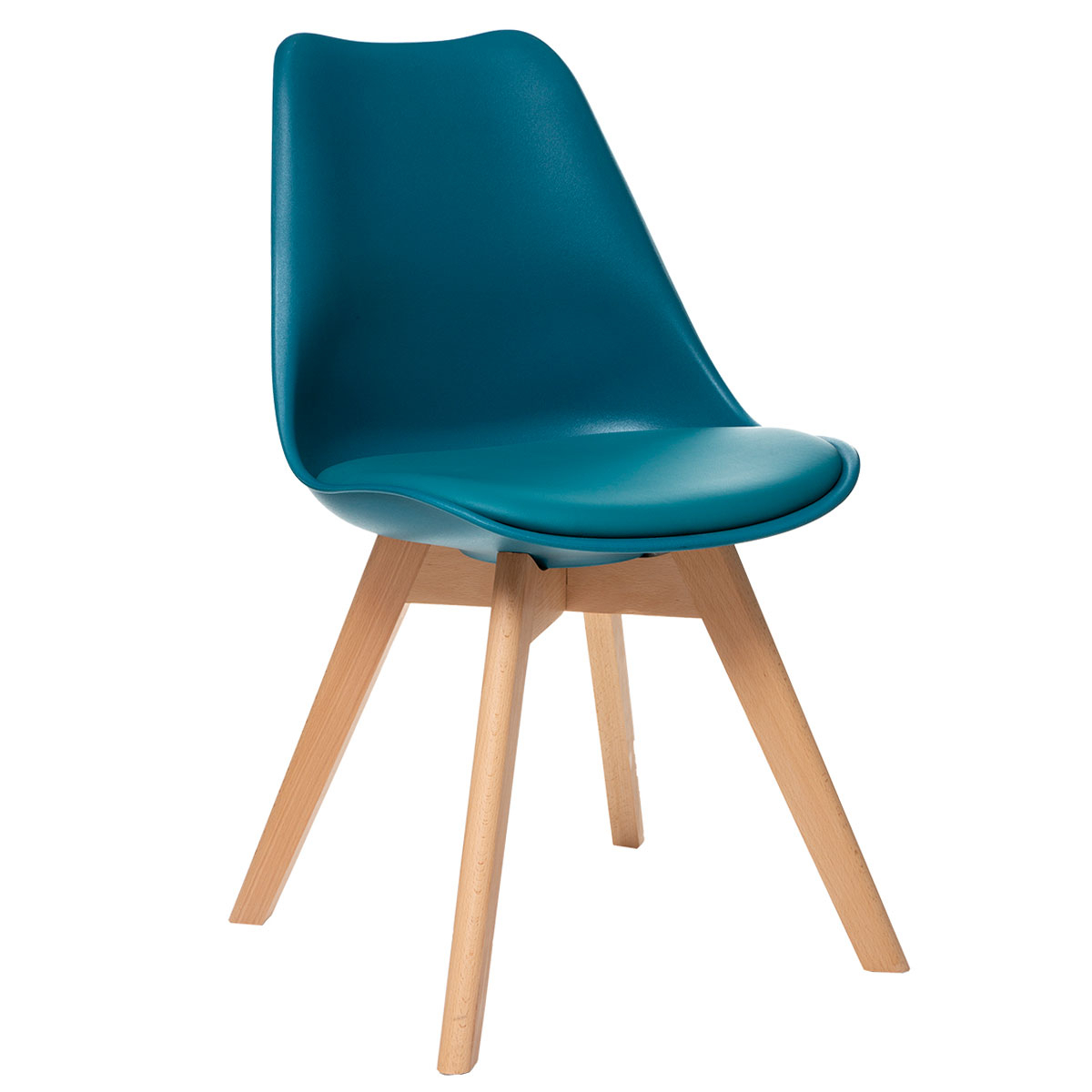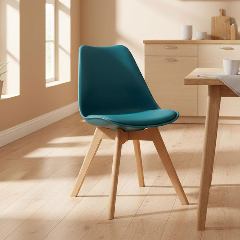 Καρέκλα με μίνιμαλ σχεδιασμό σε πετρόλ χρώμα κατάλληλη για την τραπεζαρία ή την κουζίνα σας. Το μαξιλάρι στο κάθισμα εξασφαλίζει άνεση, ενώ τα ανθεκτικά πόδια της παρέχουν σταθερότητα. Μπορεί να συνδυαστεί με τα περισσότερα στυλ τραπεζαρίας για να δημιουργήσετε τον χώρο που επιθυμείτε. Το προϊόν έρχεται αμοντάριστο και συναρμολογείται βάσει οδηγιών.