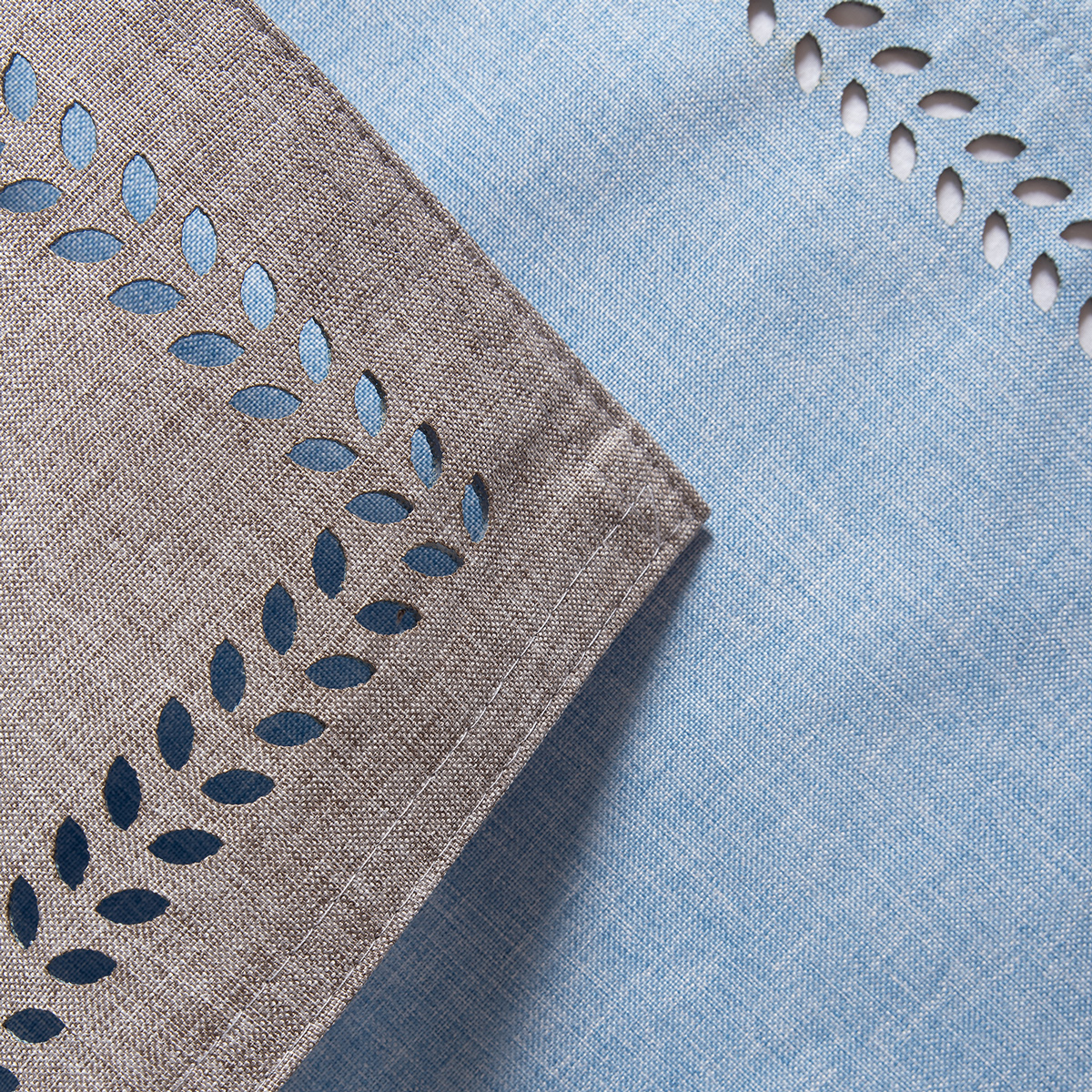 Καρέ διπλής όψης από την εταιρεία Silk Fashion με laser cut σχέδιο, σε γαλάζιο χρώμα από την μια μεριά και γκρι από την άλλη. Είναι κατασκευασμένο από 100% πολυεστερικό ύφασμα. Συνδυάστε το με τα υπόλοιπα είδη της ίδιας σειράς για ένα ολοκληρωμένο αποτέλεσμα.