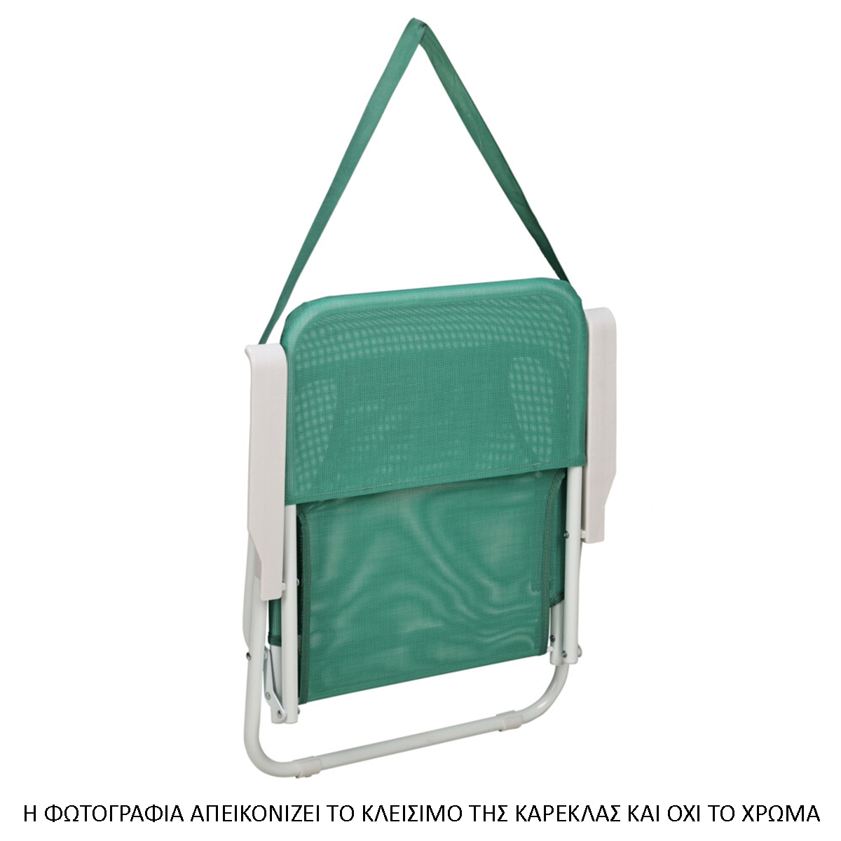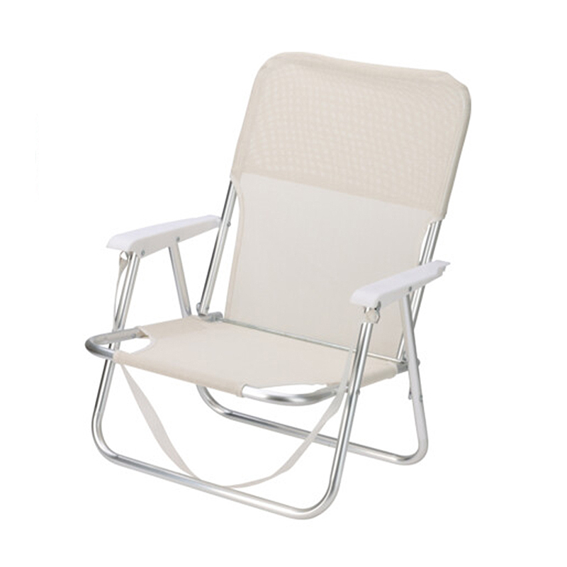 Αναδιπλούμενο καρεκλάκι παραλίας με μπράτσα. Έχει ψηλά πόδια, με απόσταση από το έδαφος μέχρι την επιφάνεια καθίσματος 26εκ. και ψηλή πλάτη για περισσότερη άνεση. Ο σκελετός του είναι κατασκευασμένος από αλουμίνιο με διατομή σωλήνα Φ1.9εκ. Το ύφασμα είναι 100% polyester σε μπεζ χρώμα ενώ διαθέτει πλαστικά μέρη σε λευκό χρώμα. Διαθέτει ιμάντα μεταφοράς. Ιδανικό καρεκλάκι για κάμπινγκ, ψάρεμα ή άλλων υπαίθριων δραστηριοτήτων. Μέγιστο βάρος ανοχής 110kg.