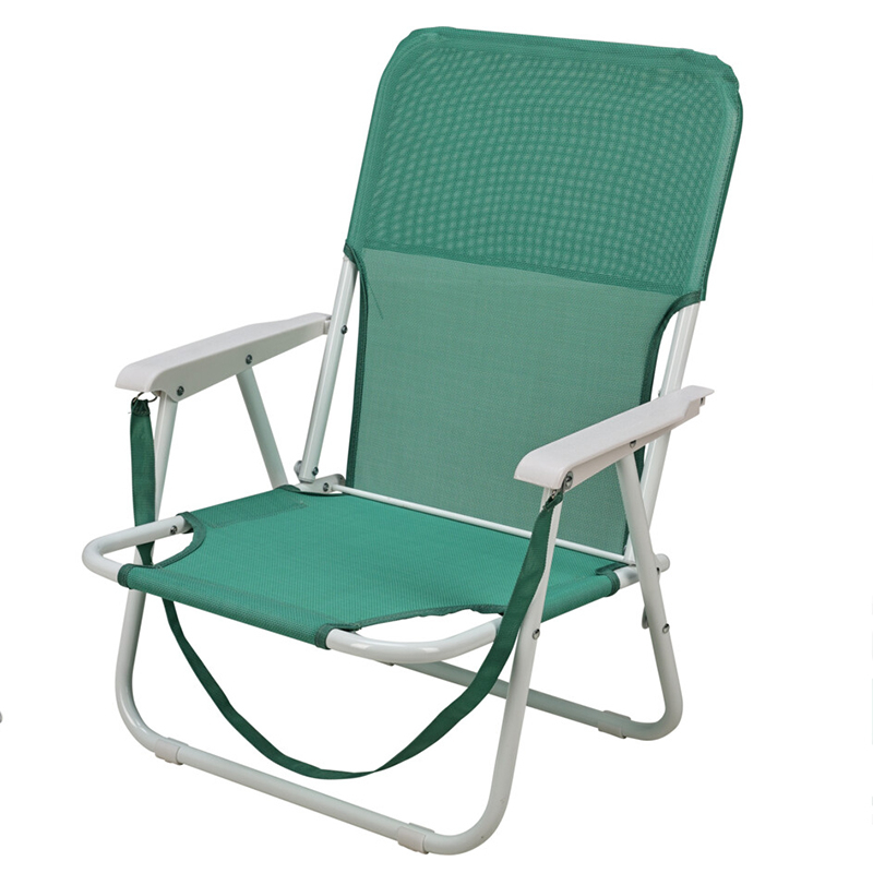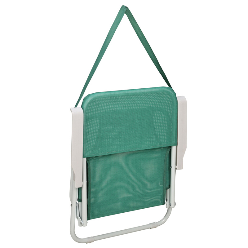 Αναδιπλούμενο καρεκλάκι παραλίας με μπράτσα. Έχει ψηλά πόδια, με απόσταση από το έδαφος μέχρι την επιφάνεια καθίσματος 26εκ. και ψηλή πλάτη για περισσότερη άνεση. Ο σκελετός του είναι κατασκευασμένος από αλουμίνιο με διατομή σωλήνα Φ1.9εκ. Το ύφασμα είναι 100% polyester σε πράσινο χρώμα ενώ διαθέτει πλαστικά μέρη σε λευκό χρώμα. Διαθέτει ιμάντα μεταφοράς. Ιδανικό καρεκλάκι για κάμπινγκ, ψάρεμα ή άλλων υπαίθριων δραστηριοτήτων. Μέγιστο βάρος ανοχής 110kg.