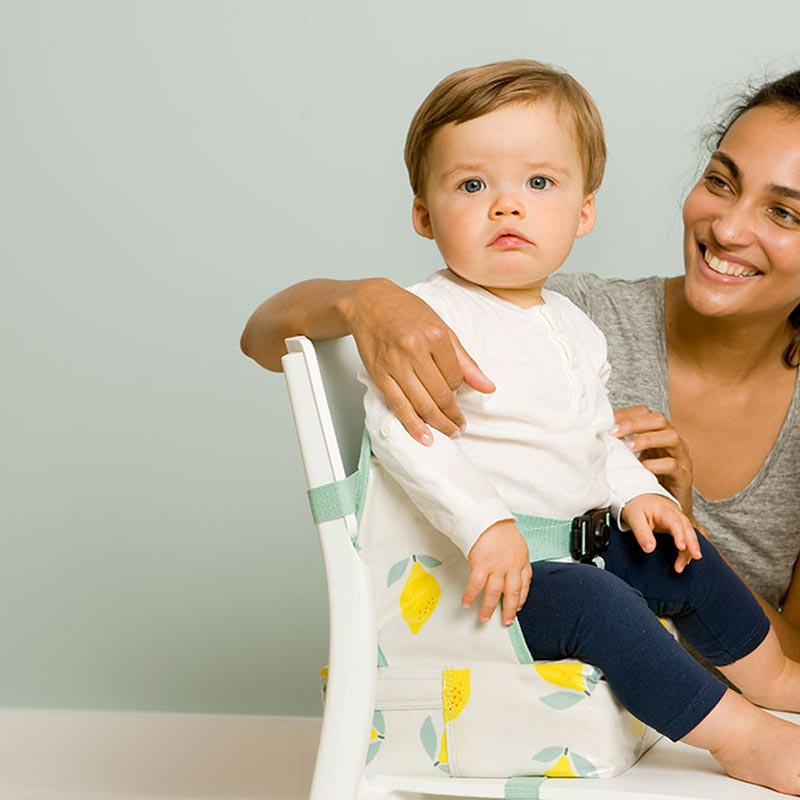 Φορητό καθισματάκι φαγητού booster σε λευκό χρώμα, κίτρινες λεπτομέρειες και μοντέρνο σχέδιο λεμόνια από την εταιρεία Baby To Love. Είναι υφασμάτινο, εσωτερικά κατασκευασμένο από 100% αφρό πολυουρεθάνης. Το ύφασμα είναι από 90% polyester και 10% βαμβάκι με αδιάβροχη επένδυση PVC. Είναι ελαφρύ και ιδανικό για να το έχετε μαζί σας παντού, καθώς διπλώνει με πρακτικό τρόπο. Το παιδί θα στέκεται άνετα στο booster και με ασφάλεια, καθώς ασφαλίζεται με την ζώνη 3 σημείων του καθίσματος και το κάθισμα δένεται στα δύο μέρη της καρέκλας, στην βάση και στην πλάτη. Είναι εύκολο στο καθάρισμα. Απλώς καθαρίστε το με ένα υγρό πανάκι. Ιδανικό καρεκλάκι booster για την επίτευξη της μέγιστης άνεσης κατά την διάρκεια του φαγητού είτε στο σπίτι είτε στο εστιατόριο. Κατάλληλο για παιδιά από 6 έως 36 ετών και μέγιστο βάρος 15 κιλά.