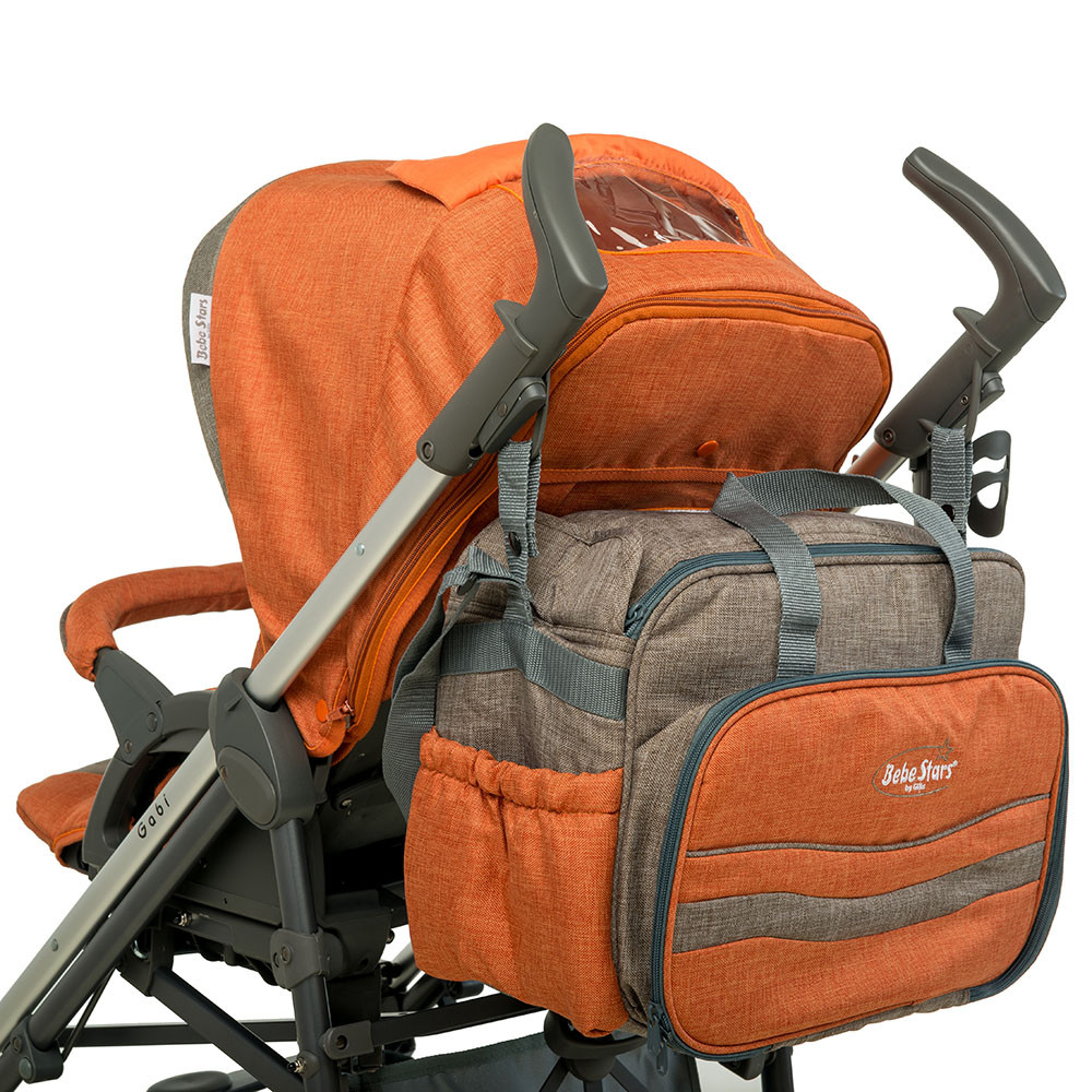 Καρότσι Gabi της εταιρείας Bebe Stars σε πορτοκαλί-μπεζ χρώμα και κατάλληλο από την γέννηση έως 36 μηνών και βάρος 15kg.