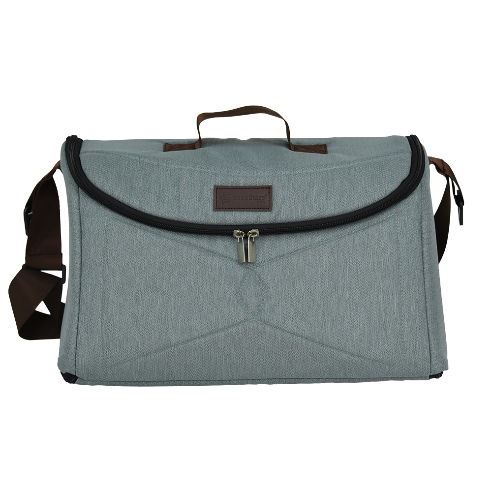 - Με τσάντα που περιλαμβάνει αλλαξιέρα και έχει γάντζους για να κρεμιέται στο καρότσι. Διαθέτει πολλές θήκες και ρυθμιζόμενους ιμάντες.