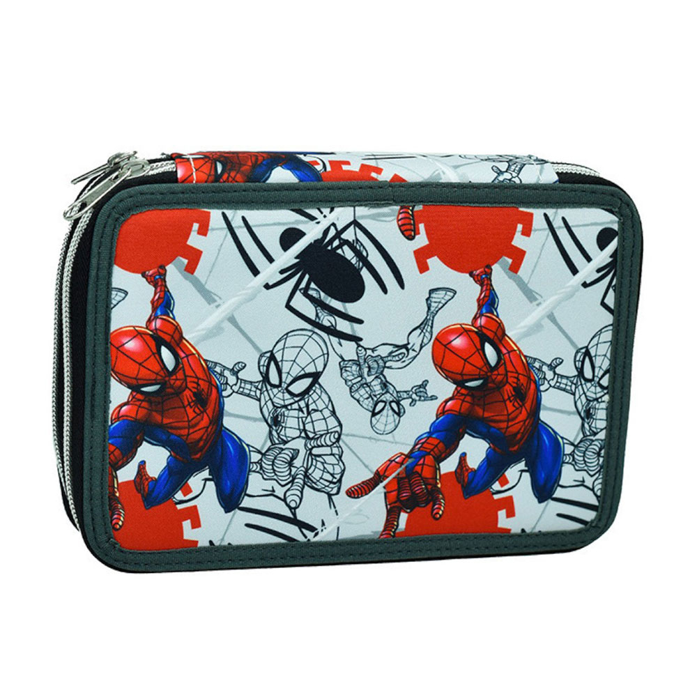 Κασετίνα από την εταιρεία Gim σε βεραμάν-μαύρο χρώμα με κόκκινες λεπτομέρειες και τον ήρωα της Marvel Spiderman στο σχέδιο. Έχει 2 θήκες που κλείνουν με φερμουάρ. Η κασετίνα περιλαμβάνει 1 μολύβι, 1 γόμα, 1 ξύστρα, 1 χάρακα, 10 ξυλομπογιές, 10 μαρκαδόρους, 1 μπλοκάκι σημειώσεων και 1 εβδομαδιαίο πρόγραμμα. Όμορφη και πρακτική κασετίνα, ιδανική για να συνοδεύει καθημερινά το παιδί στο σχολείο.