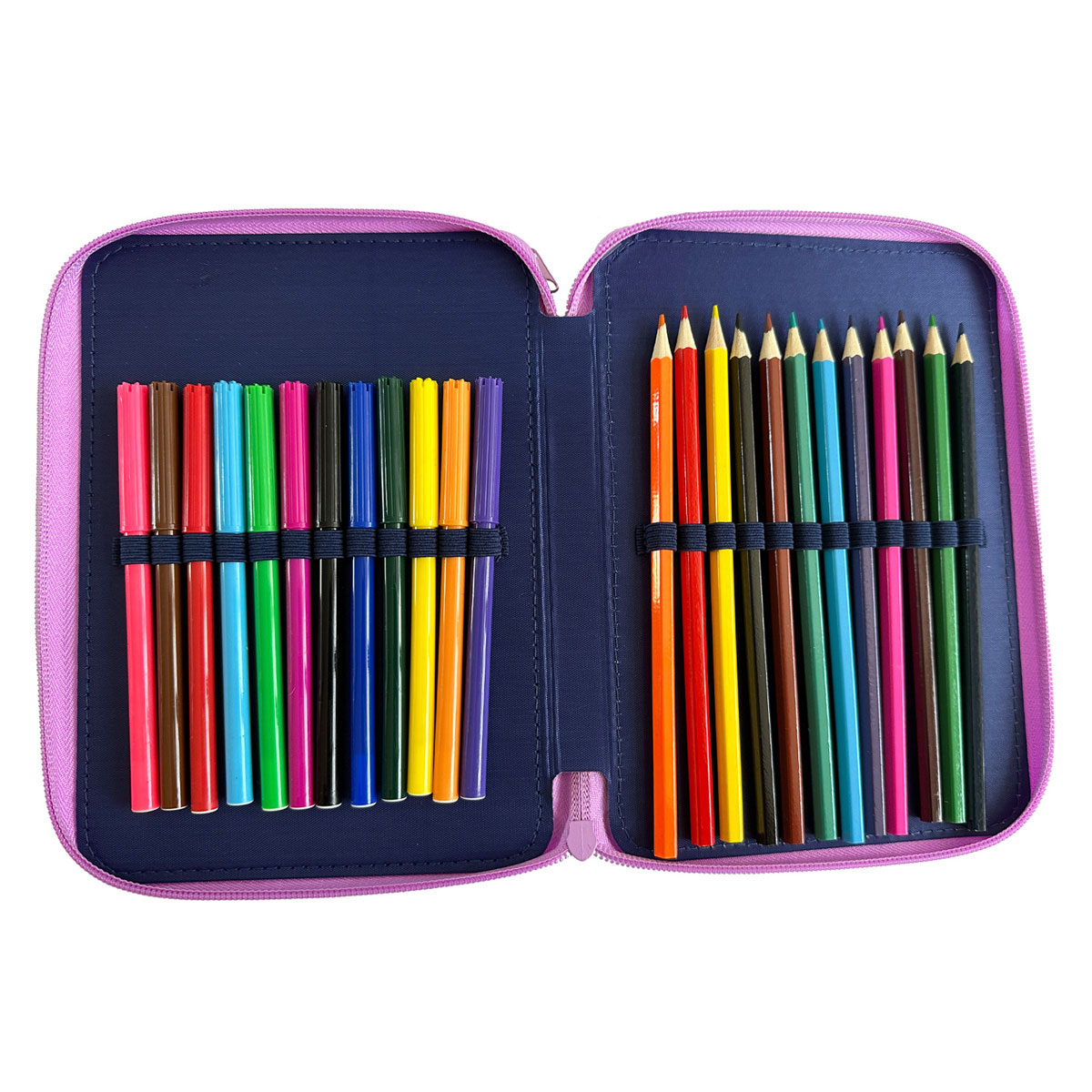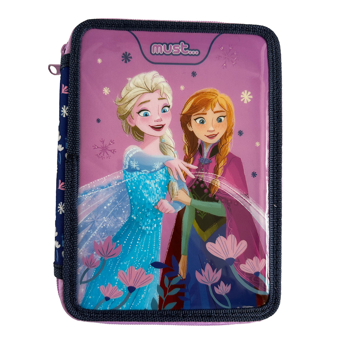 Κασετίνα από την εταιρεία Must σε λιλά χρώμα με πολύχρωμες λεπτομέρειες και σχέδιο από την ταινία Frozen της Disney. Είναι κατασκευασμένη από πολυεστέρα. Έχει 2 θήκες που κλείνουν με φερμουάρ. Η κασετίνα περιλαμβάνει 1 στυλό, 1 μολύβι, 1 γόμα, 1 ξύστρα, 1 χάρακα, ξυλομπογιές και μαρκαδόρους. Όμορφη και πρακτική κασετίνα, ιδανική για να συνοδεύει καθημερινά το παιδί στο σχολείο.