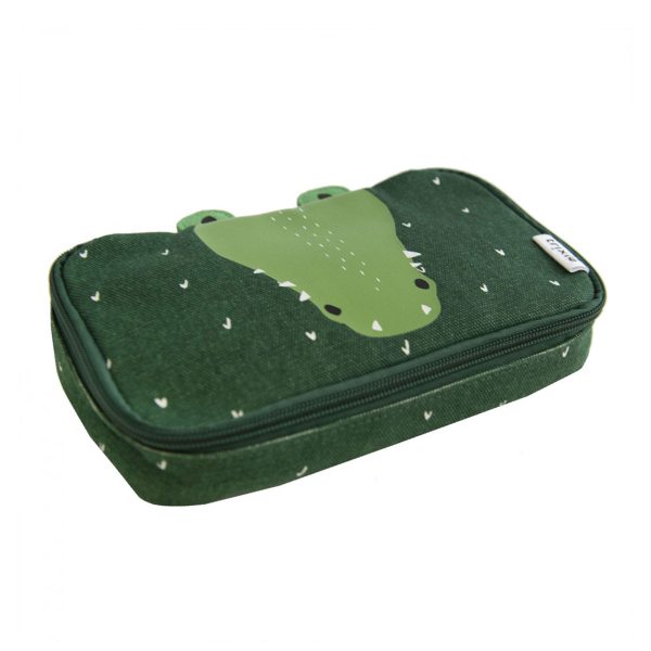 Κασετίνα σε πράσινο χρώμα και σχέδιο κροκόδειλο από την εταιρία Trixie. Κατασκευασμένη από 100% βαμβάκι που τη καθιστά μαλακή και ανθεκτική. Σε ορθογώνιο σχήμα, ταιριάζει εύκολα με όλα τα ψαλίδια τους χάρακες, τα μολύβια και τις γόμες.