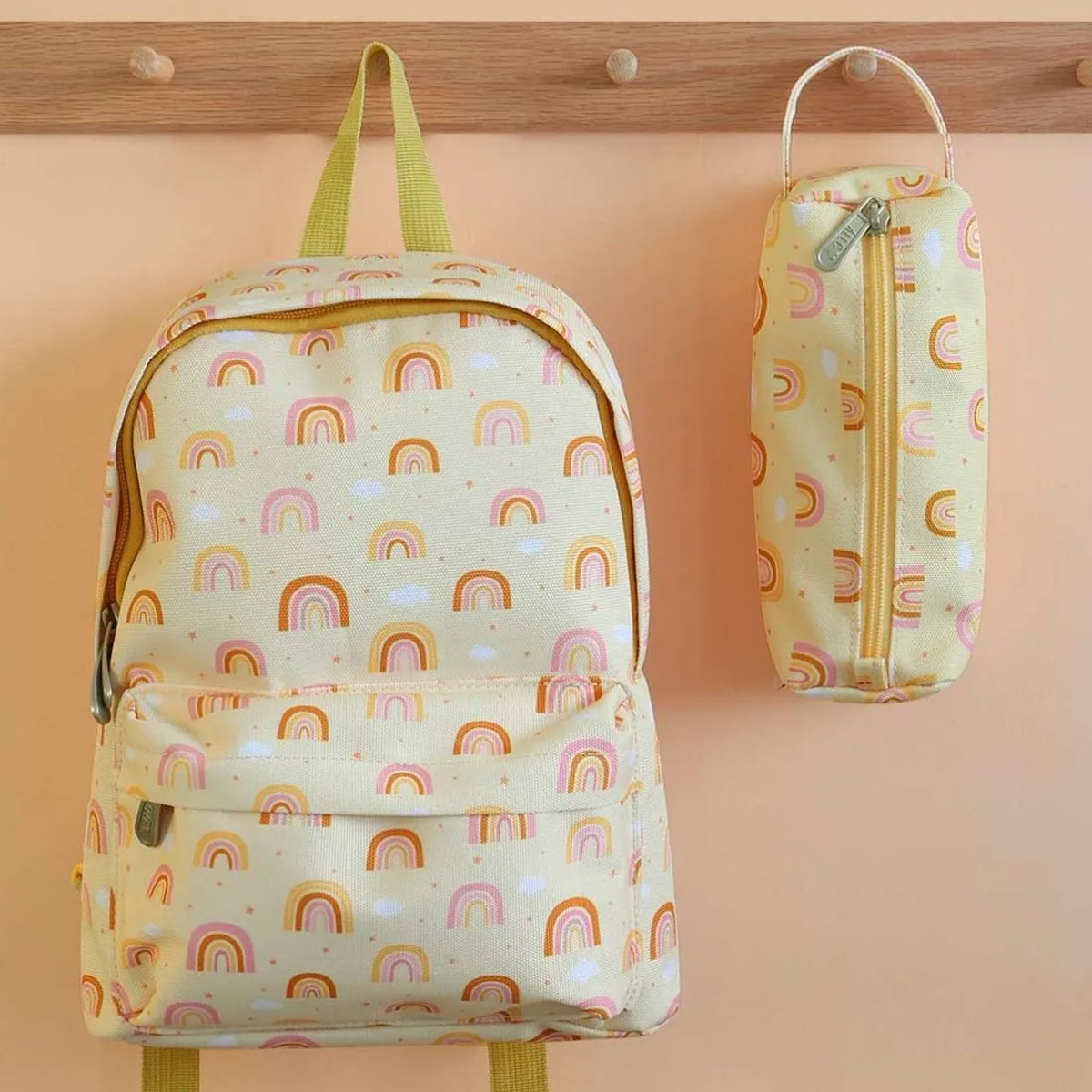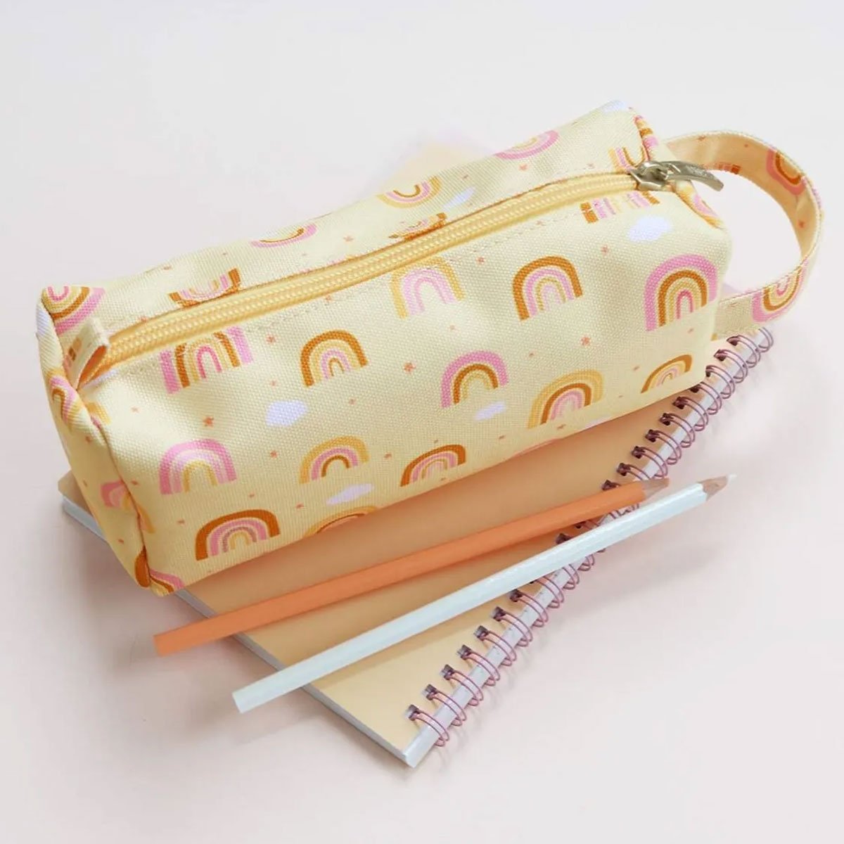 Κασετίνα της εταιρείας A Little Lovely Company ιδανική για την αποθήκευση των μολυβιών, των μαρκαδόρων, των ξυλομπογιών! Σε μπεζ απόχρωση με σχέδιο ουράνιων τόξων. Είναι κατασκευασμένη από ελαφρύ πολυεστερικό ύφασμα και PEVA. Είναι επενδυμένη στο εσωτερικό για μεγαλύτερη αντοχή, έχει φερμουάρ και εύχρηστο λουράκι για μεταφορά.
