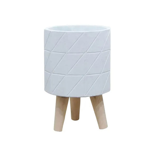 Κασπώ με βάση της εταιρείας Marhome σε λευκό χρώμα με μοντέρνο σχέδιο. Είναι κατασκευασμένο από τσιμέντο και έχει ξύλινα πόδια. Ιδανικό για να τοποθετείτε φυσικά ή τεχνητά φυτά. Μπορείτε για να διακοσμήσετε όλους τους εσωτερικούς ή εξωτερικούς χώρου σας και να ανανεώσετε την αισθητική τους!