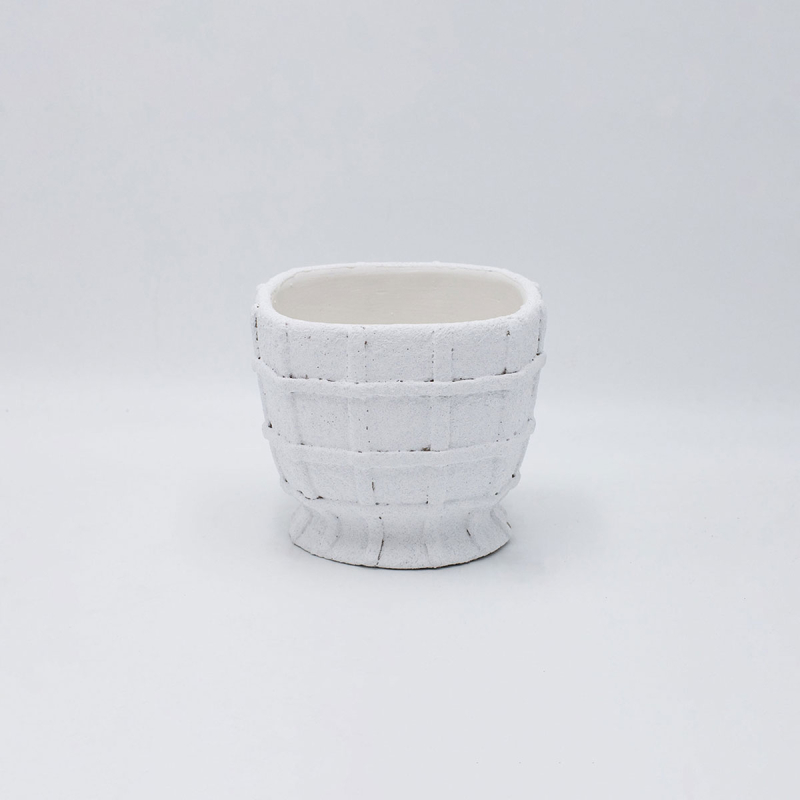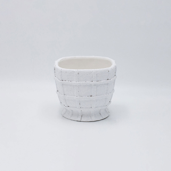 Κασπώ από την εταιρεία Estheti σε λευκό χρώμα με μοντέρνο σχέδιο. Είναι κατασκευασμένο από τσιμέντο. Μπορεί να χρησιμοποιηθεί για να τοποθετήσετε μέσα λουλούδια ή μόνο του σαν διακοσμητικό. Αναβαθμίστε την αισθητική των εσωτερικών και εξωτερικών χώρων σας με γλάστρες, κασπώ και ζαρντινιέρες.