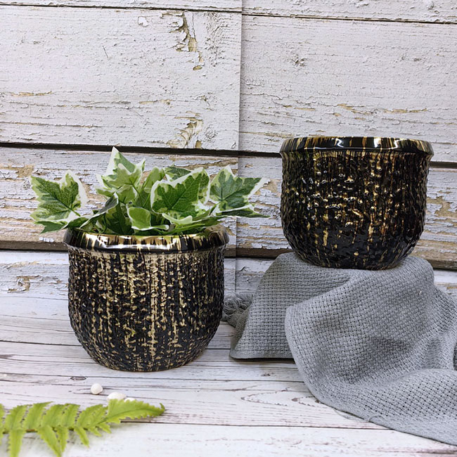 Κασπώ της εταιρείας Marhome σε μαύρο χρώμα με χρυσές λεπτομέρειες και μοντέρνο σχέδιο. Είναι κατασκευασμένο από τσιμέντο. Ιδανικό για να τοποθετείτε φυσικά ή τεχνητά φυτά. Μπορείτε για να διακοσμήσετε όλους τους εσωτερικούς ή εξωτερικούς χώρου σας και να ανανεώσετε την αισθητική τους!