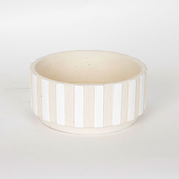 Κασπώ από την εταιρεία Estheti σε μπεζ χρώμα με λευκές ρίγες και μοντέρνο σχέδιο. Είναι κατασκευασμένο από τσιμέντο. Μπορεί να χρησιμοποιηθεί για να τοποθετήσετε μέσα λουλούδια ή μόνο του σαν διακοσμητικό. Αναβαθμίστε την αισθητική των εσωτερικών και εξωτερικών χώρων σας με γλάστρες, κασπώ και ζαρντινιέρες.