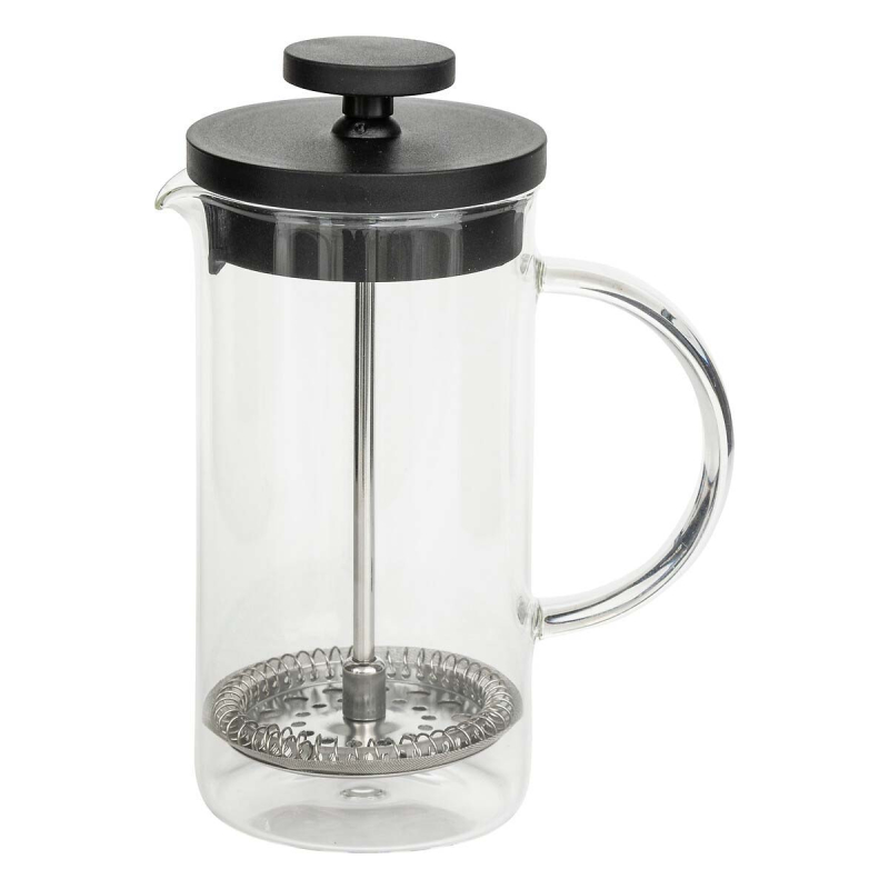 Καφετιέρα χειρός κατασκευασμένη από διάφανο γυαλί με μαύρες πλαστικές λεπτομέρειες. Λειτουργεί με έμβολο και έτσι δεν χρειάζεται να χρησιμοποιήσετε φίλτρα. Σας επιτρέπει να φτιάξετε τον αγαπημένο σας καφέ γρήγορα, εύκολα και χωρίς ρεύμα.