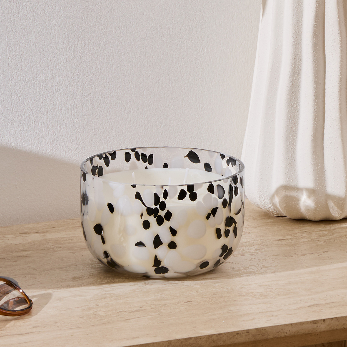 Κερί που θα ανανεώσει εσάς και την ατμόσφαιρα του χώρου σας. Είναι τοποθετημένο σε διάφανο γυάλινο δοχείο με μαύρο animal print σχέδιο. Συνδυάστε το με τα υπόλοιπα προϊόντα της ίδιας συλλογής για ένα ολοκληρωμένο αποτέλεσμα στο χώρο σας.