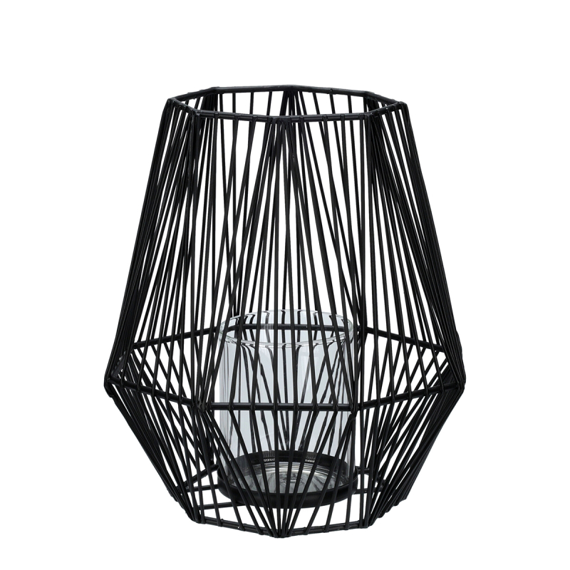 Φανάρι κατασκευασμένο από μεταλλικό υλικό σε μαύρο χρώμα. Με μοντέρνο σχεδιασμό που το καθιστά ιδανικό για κάθε χώρο και γυάλινο ποτηράκι εσωτερικά για να τοποθετήσετε το κερί. Ιδανικό για να χαρίσετε απαλό φωτισμό σε οποιονδήποτε εσωτερικό ή εξωτερικό χώρο.