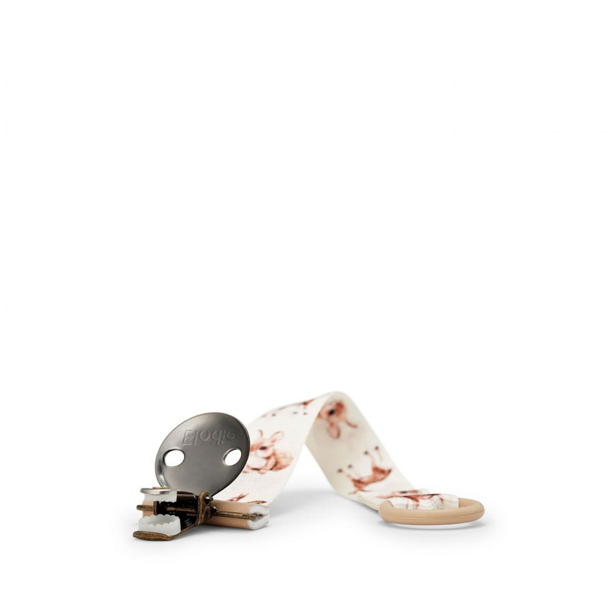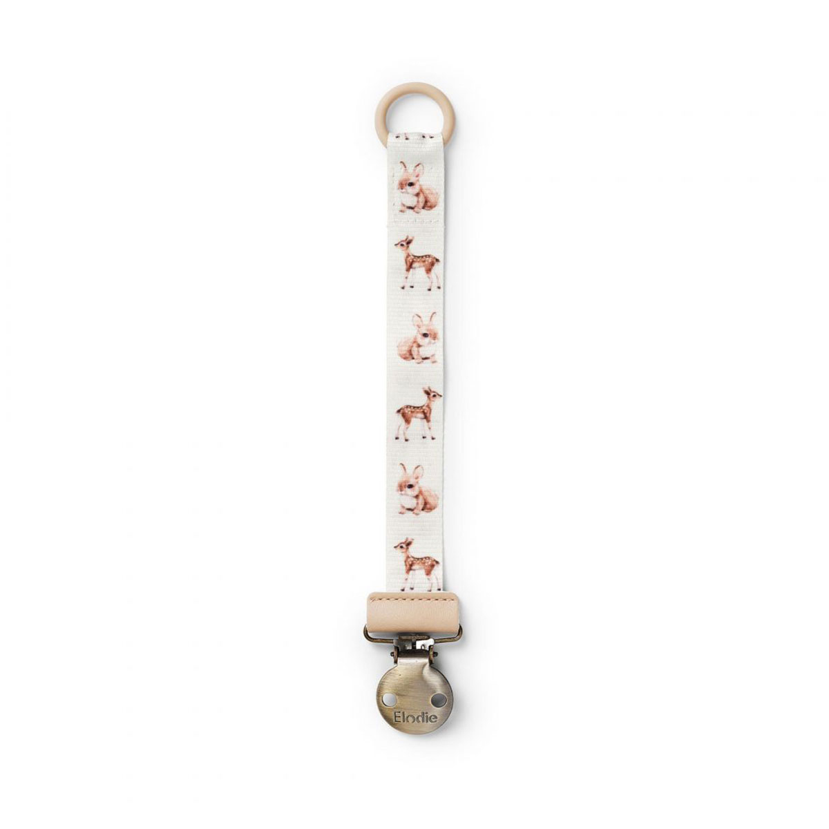Κλιπ πιπίλας από την εταιρεία Elodie σε μπεζ χρώμα και σχέδιο ζωάκια. Είναι κατασκευασμένο η κορδέλα από 100% ανακυκλωμένο πολυεστέρα, το κλιπ από λακαρισμένο ξύλο και ο δακτύλιος από σιλικόνη. Τοποθετείται απαλά στο ρούχο του μωρού με κλιπ, για να διατηρείται πάντα καθαρή η πιπίλα και κοντά στο μωρό σας. Πρακτική λύση καθώς είναι συμβατή με όλες τις πιπίλες. Το μεταλλικό κλιπ έχει σχεδιαστεί για να στερεώνεται μόνο στα ρούχα και δεν πρέπει να τοποθετείτε σε πιο χοντρά προϊόντα, όπως το καροτσάκι, καθώς αυτό μπορεί να προκαλέσει ζημιά στο μηχανισμό κλεισίματος. Για την ασφάλεια του παιδιού σας, μην επιτρέπετε ποτέ το κλιπ πιπίλας να χρησιμοποιείται από το παιδί σας ως παιχνίδι ή κρίκος οδοντοφυΐας. Συνδυάστε το με την πιπίλα του ιδίου σχεδίου.