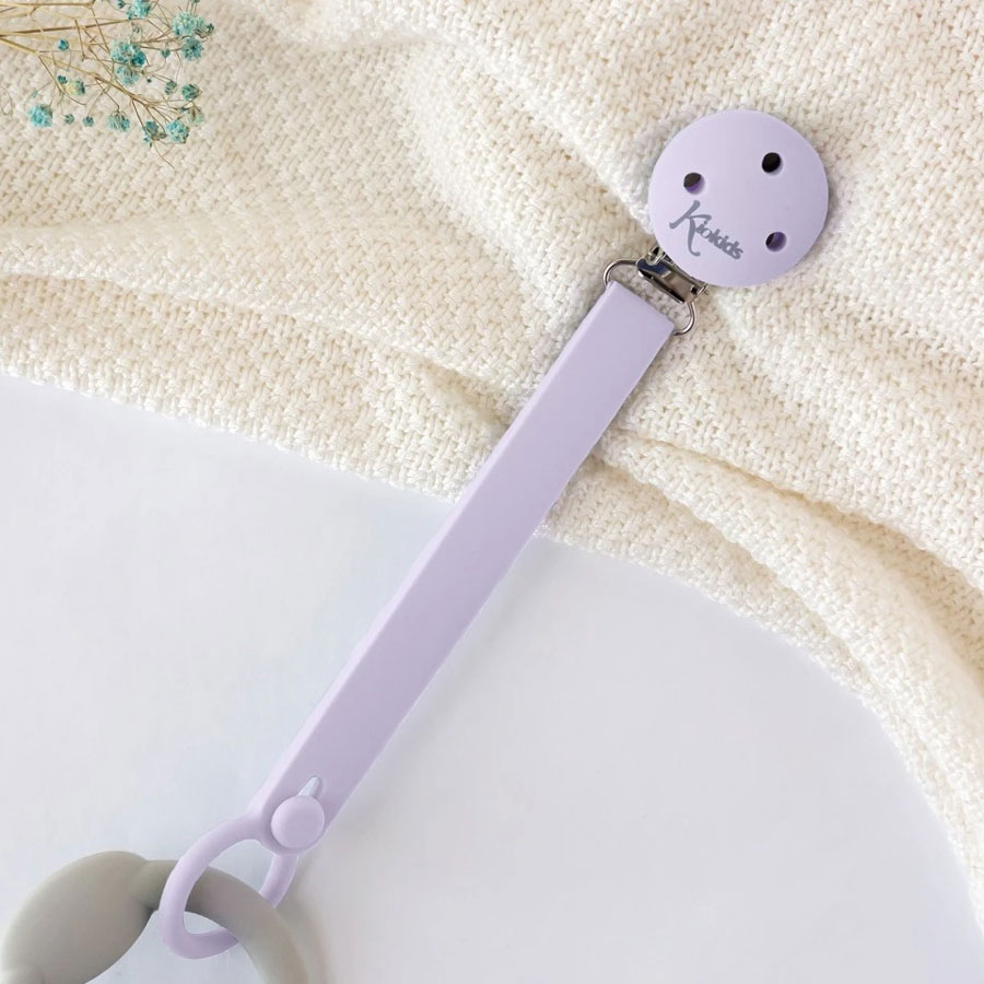 Κλιπ πιπίλας σε λιλά χρώμα από την εταιρεία Kiokids. Είναι κατασκευασμένο από σιλικόνη και ανοξείδωτο ατσάλι κατάλληλα για τρόφιμα, ένα φιλικό προς το περιβάλλον, αντιβακτηριδιακό και ανθεκτικό υλικό. Είναι ιδανικό για να διατηρείται η πιπίλα πάντα καθαρή ενώ είναι και ασφαλές αν θελήσει το μικρό σας να το μασήσει. Κατάλληλο από 0+ μηνών.