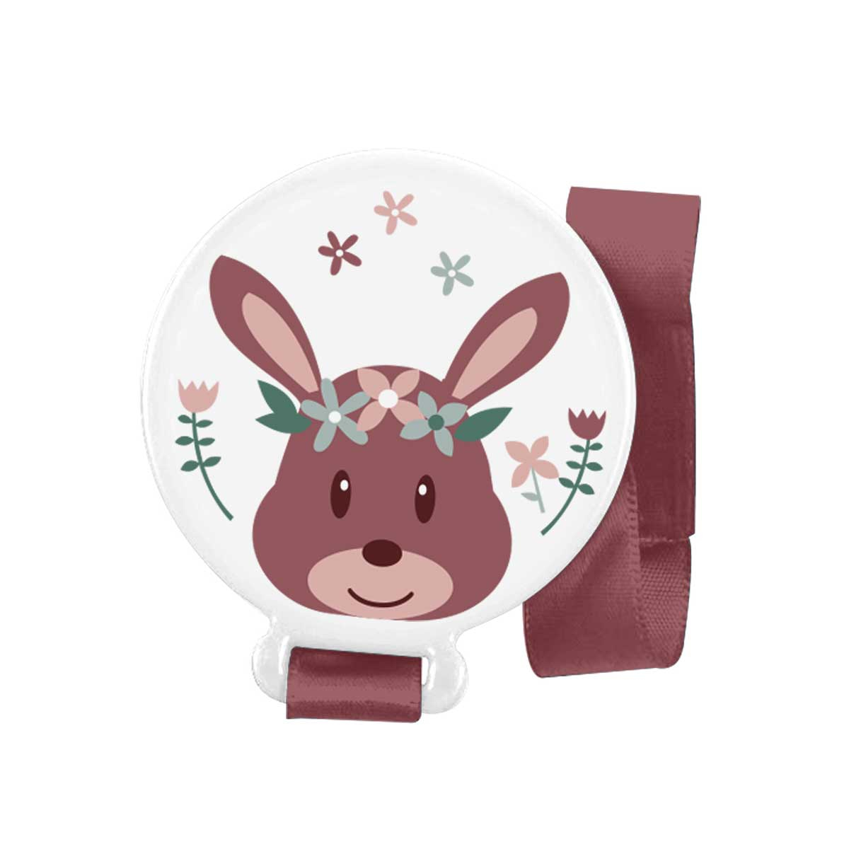 Κλιπ πιπίλας σε σάπιο μήλο-λευκό χρώμα και σχέδιο ζωάκι. Πιάνεται στο ρουχαλάκι του μωρού για να μην πέφτει η πιπίλα στο πάτωμα και να παραμένει καθαρή.