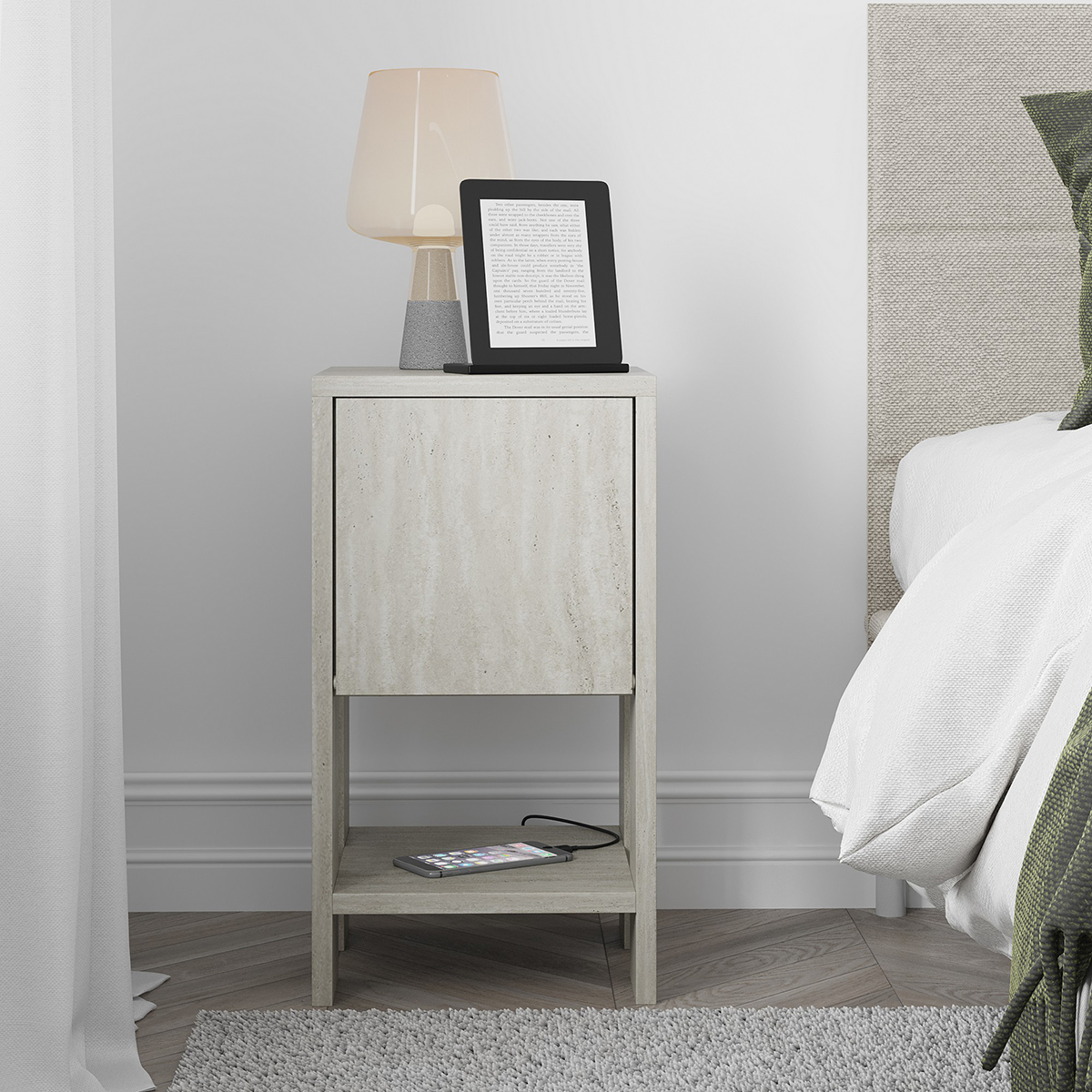 | SpitishopΚομοδίνο Με Ντουλάπι & Ράφι (30x30x55) A-G Ema 776HMS3440 Travertine