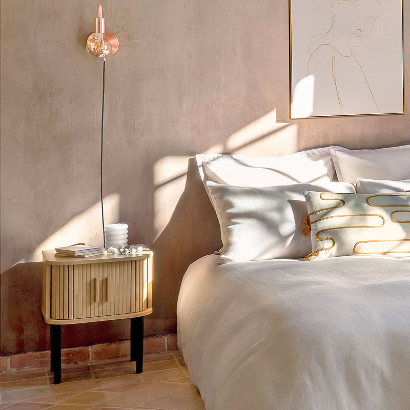 Κομοδίνο σε μπεζ απόχρωση με συρόμενο ντουλάπι, ιδανικό για τοποθέτηση δίπλα στο κρεβάτι. Έχει μοντέρνο σχεδιασμό που ταιριάζει με όλα τα στυλ. Το προϊόν έρχεται αμοντάριστο και συναρμολογείται βάσει οδηγιών.