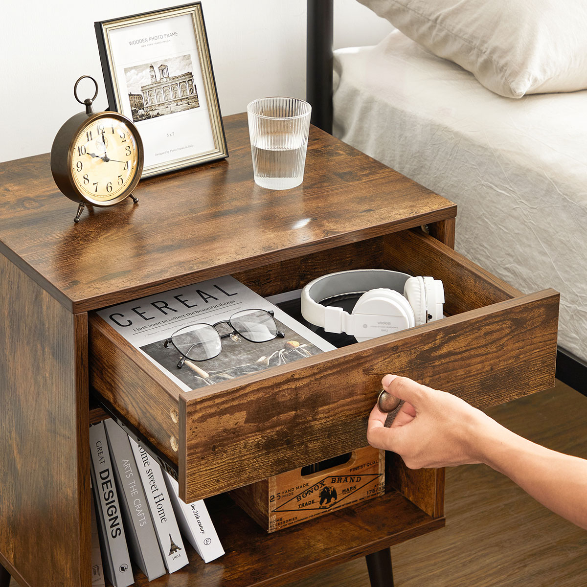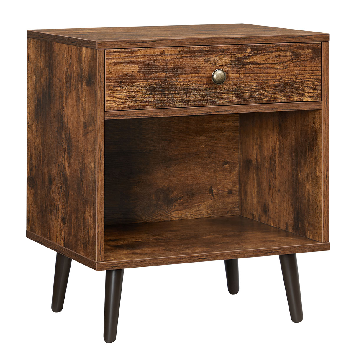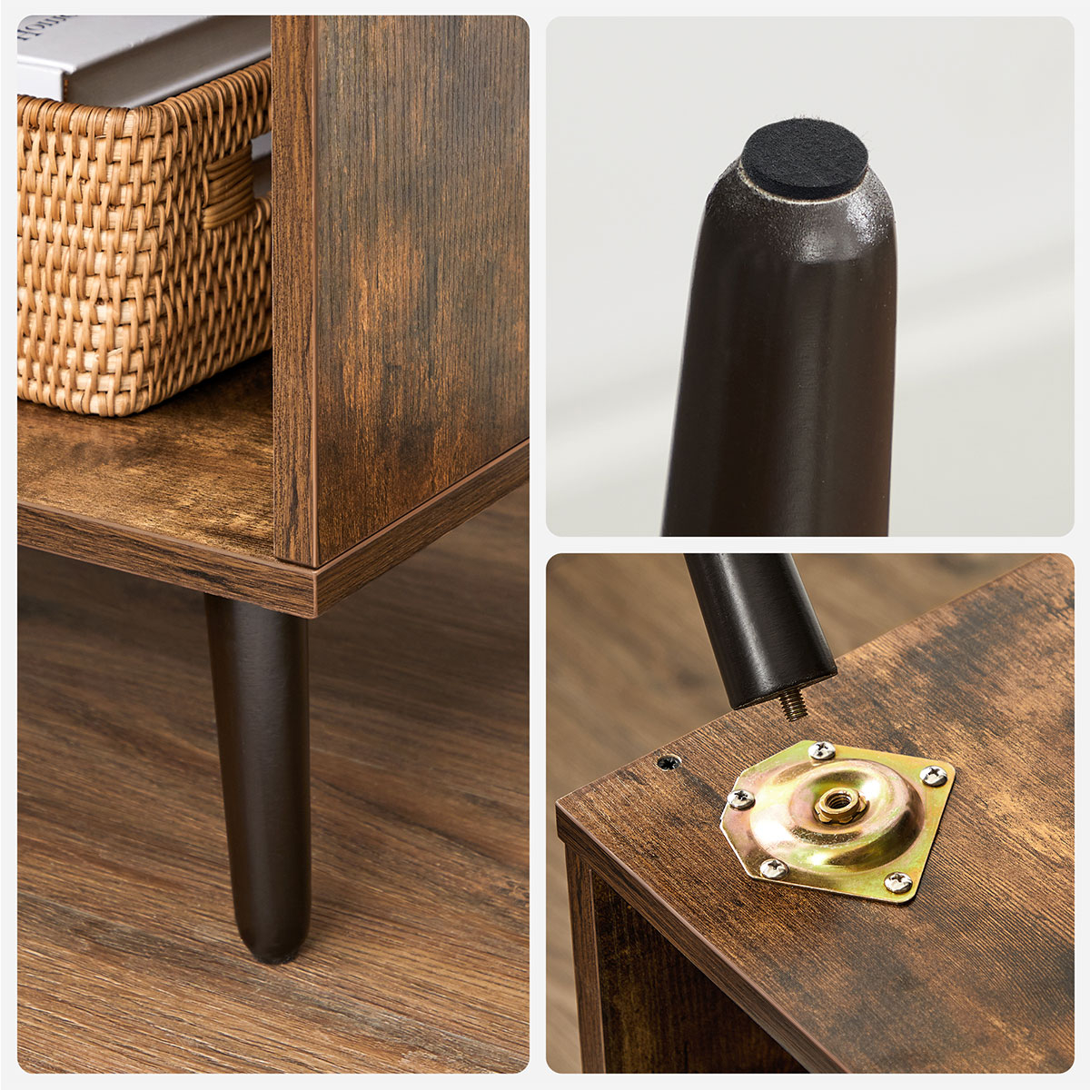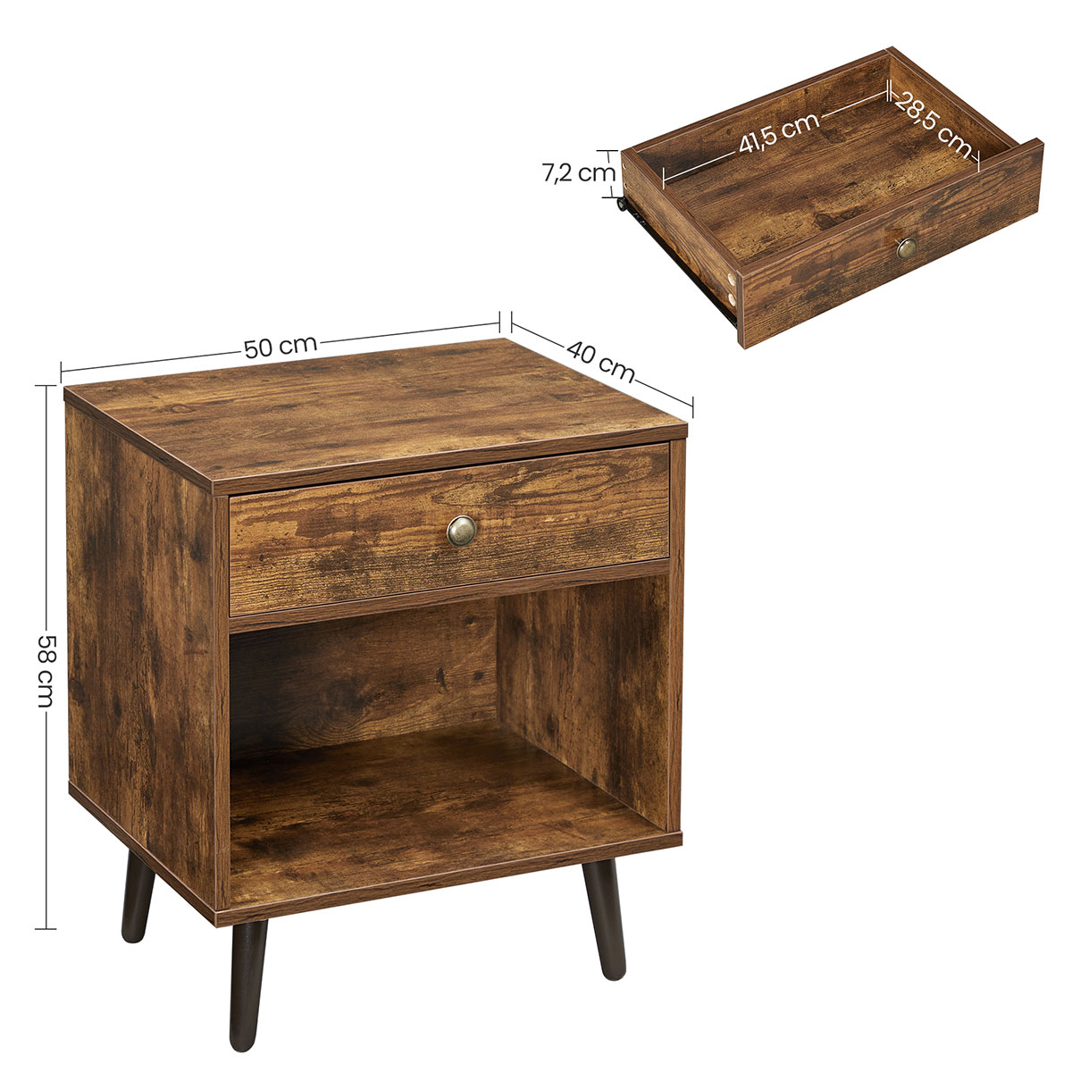 Κομοδίνο από την εταιρεία Vasagle σε καφέ ρουστίκ χρώμα. Διαθέτει χώρους για να αποθηκεύετε τα μικροπράγματα σας. Ιδανικό για δίπλα από το κρεβάτι ή σαν βοηθητικό τραπεζάκι στο σαλόνι. Το προϊόν έρχεται αμοντάριστο και συναρμολογείται βάσει οδηγιών.