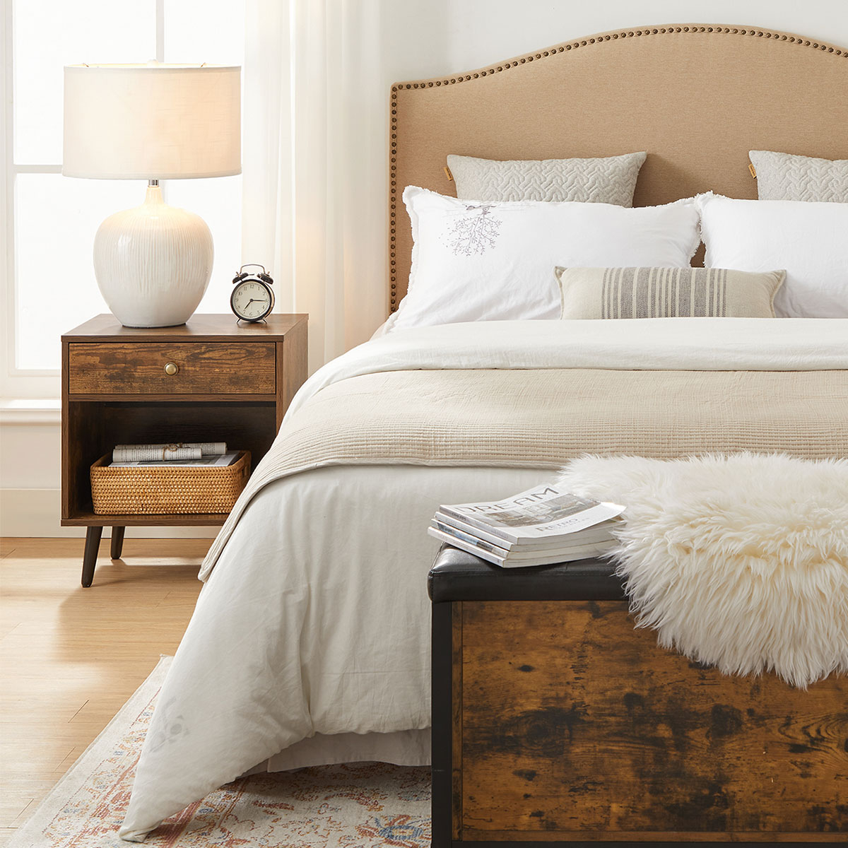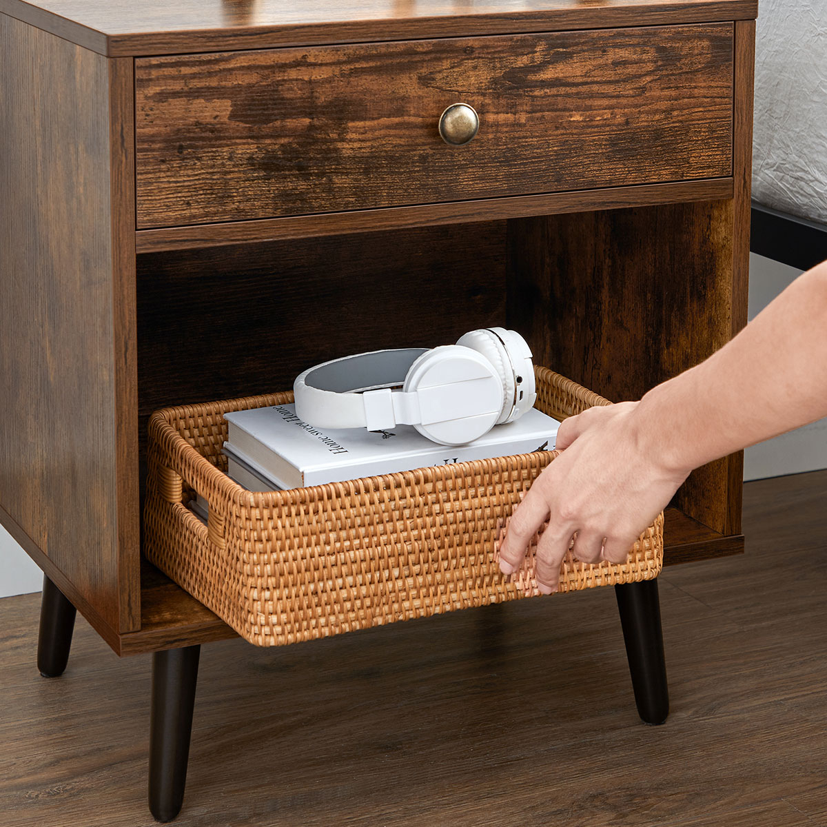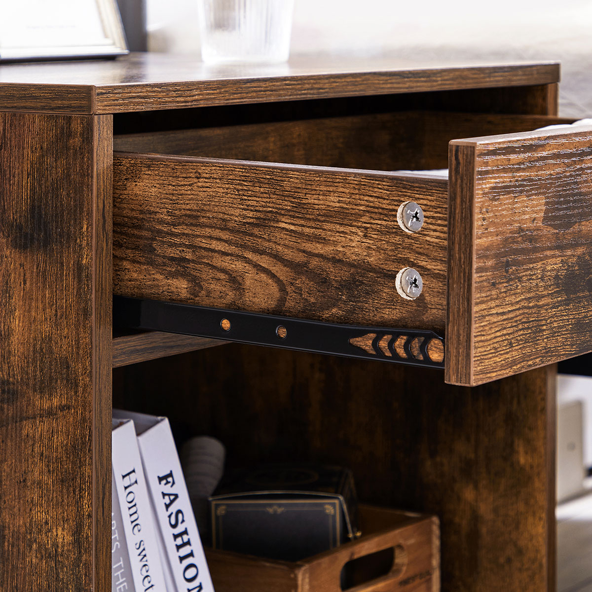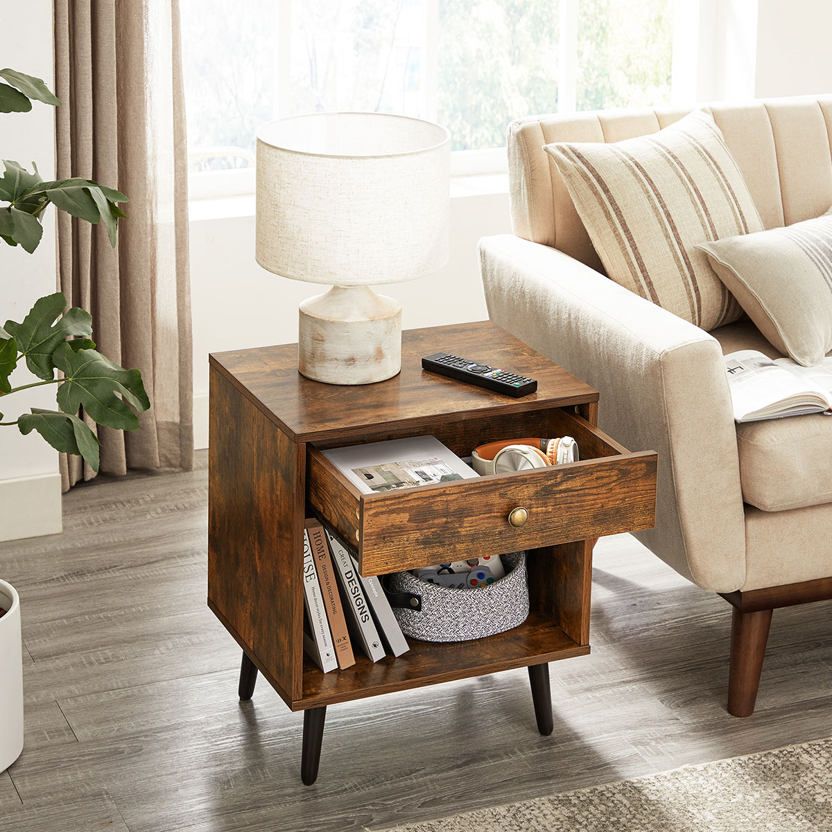 Κομοδίνο από την εταιρεία Vasagle σε καφέ ρουστίκ χρώμα. Διαθέτει χώρους για να αποθηκεύετε τα μικροπράγματα σας. Ιδανικό για δίπλα από το κρεβάτι ή σαν βοηθητικό τραπεζάκι στο σαλόνι. Το προϊόν έρχεται αμοντάριστο και συναρμολογείται βάσει οδηγιών.