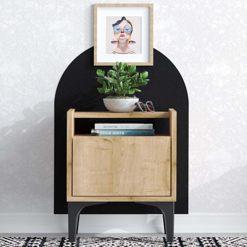Κομοδίνο με μοντέρνο σχεδιασμό σε απόχρωση δρυός με μαύρες λεπτομέεριες. Κατασκευασμένο από υψηλής ποιότητας υλικά για αντοχή στην μακροχρόνια χρήση. Διαθέτει αποθηκευτικό χώρο για όλα τα αντικείμενα που θέλετε κοντά σας όταν βρίσκεστε στην κρεβατοκάμαρά σας. Το προϊόν έρχεται αμοντάριστο και συναρμολογείται βάσει οδηγιών.