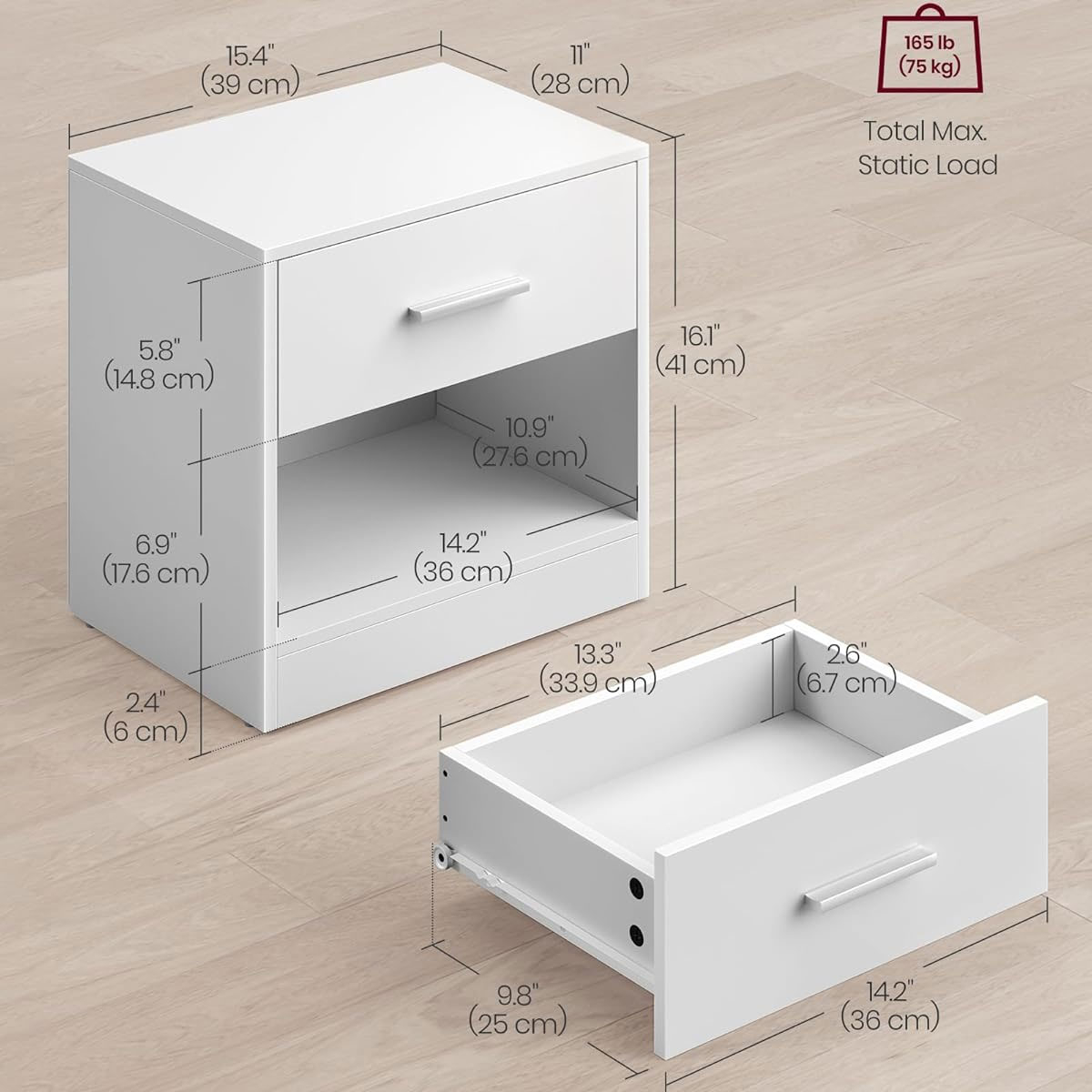 Κομοδίνο από την εταιρεία Vasagle σε λευκό χρώμα. Ιδανικό για να δώσει μίνιμαλ ύφος στην κρεβατοκάμαρα σας ενώ ταυτόχρονα την διατηρεί τακτοποιημένη. Το προϊόν έρχεται αμοντάριστο και συναρμολογείται βάσει οδηγιών.