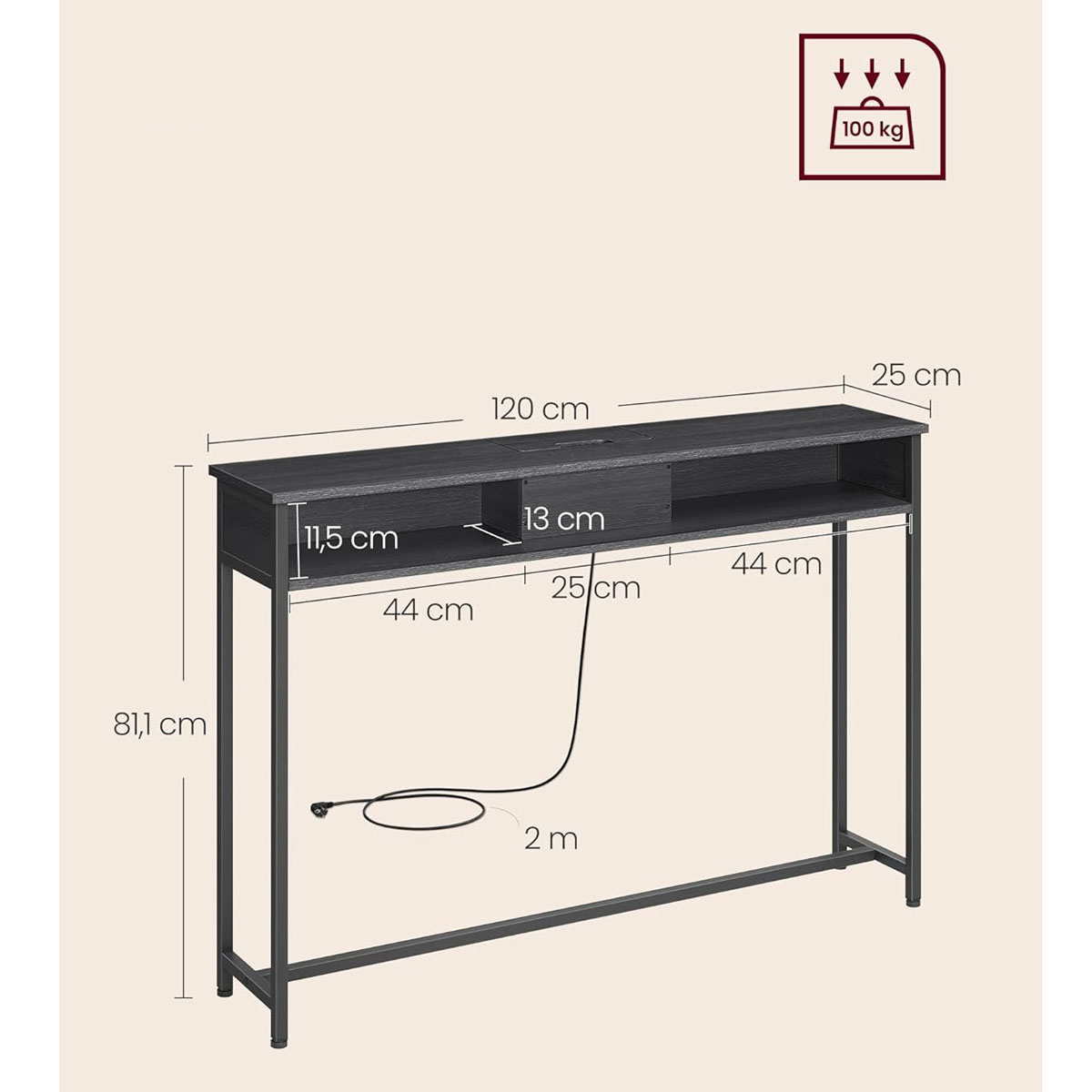 Κονσόλα εισόδου με παροχή ρεύματος και μοντέρνο σχεδιασμό από την εταιρεία Vasagle. Μπορείτε να την τοποθετήσετε δίπλα από την πόρτα, πίσω από τον καναπέ ή όπου αλλού σας είναι απαραίτητη. Ιδανικό και πρακτικό έπιπλο που θα ταιριάξει σε κάθε σπίτι. Το προϊόν έρχεται αμοντάριστο και συναρμολογείται βάσει οδηγιών.