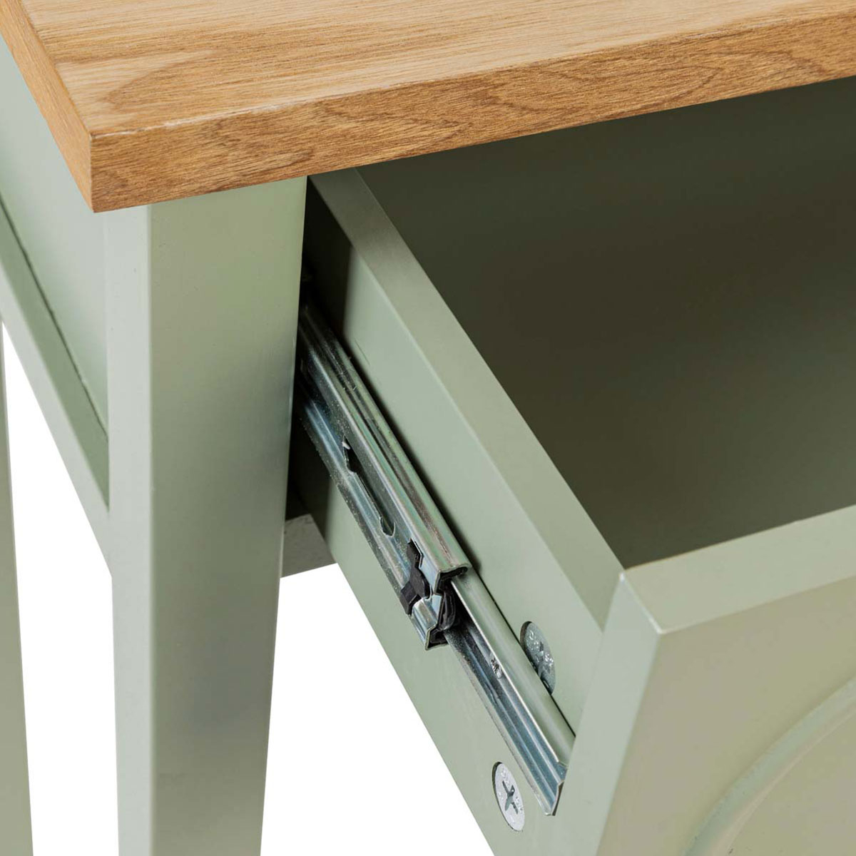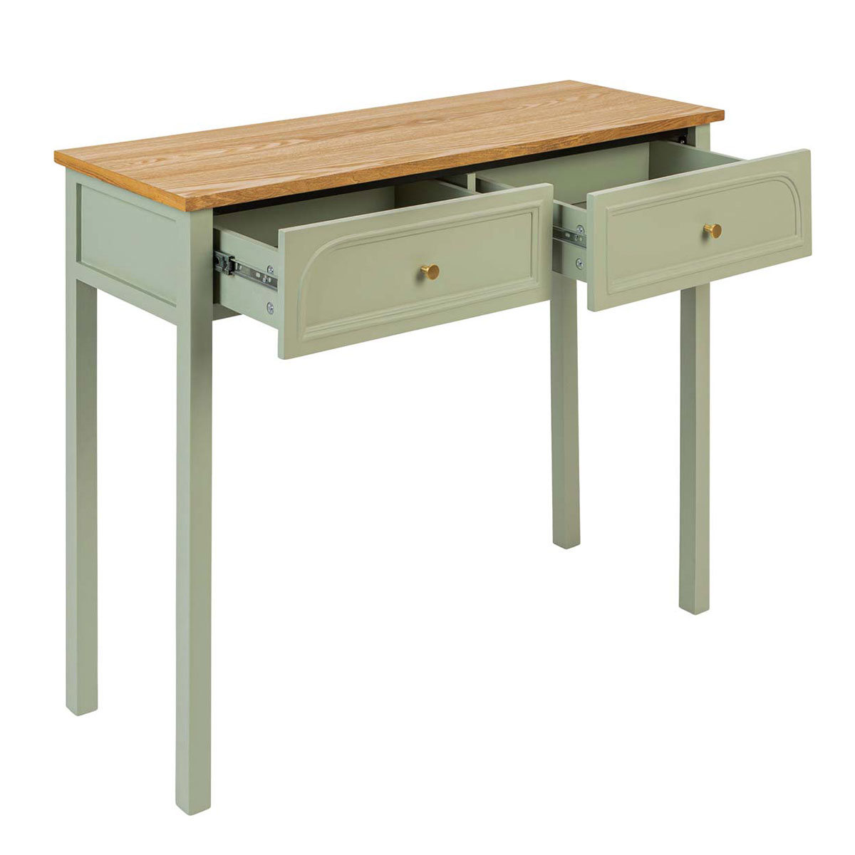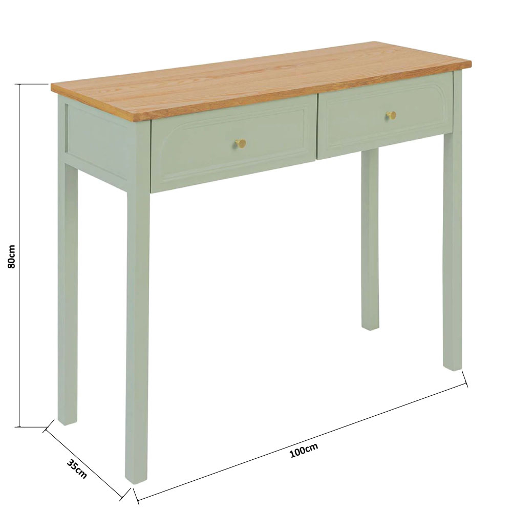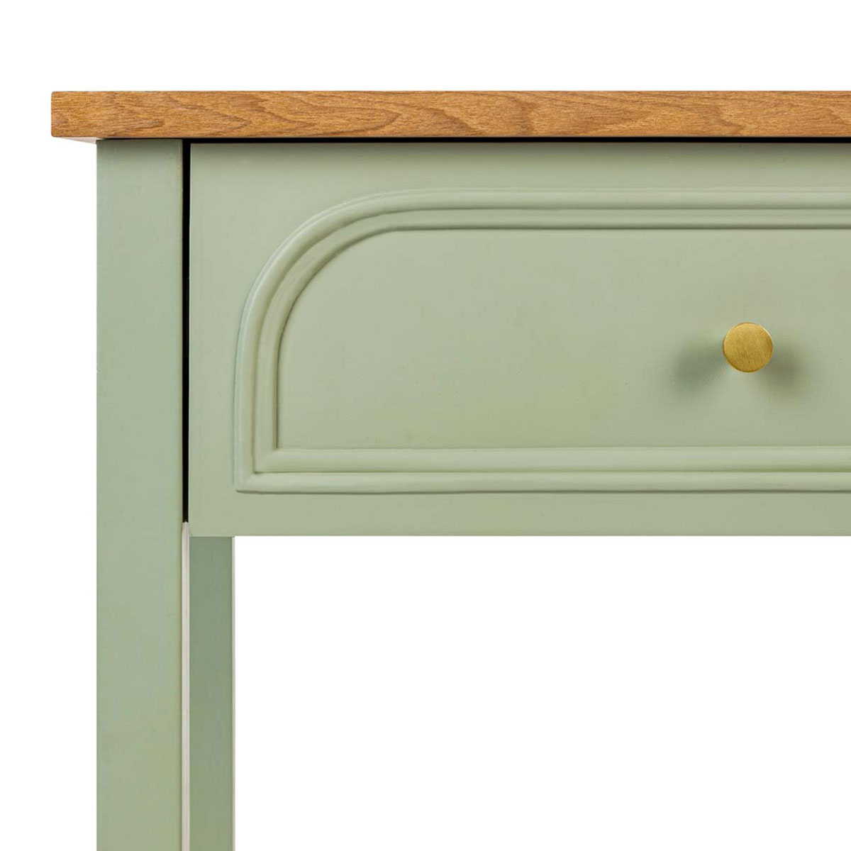 Κονσόλα σε πράσινο χρώμα και επιφάνεια με φυσική όψη ξύλου. Ο μοντέρνος σχεδιασμός θα χαρίσει μοναδικό ύφος στο σπίτι σας. Το προϊόν έρχεται αμοντάριστο και συναρμολογείται βάσει οδηγιών.