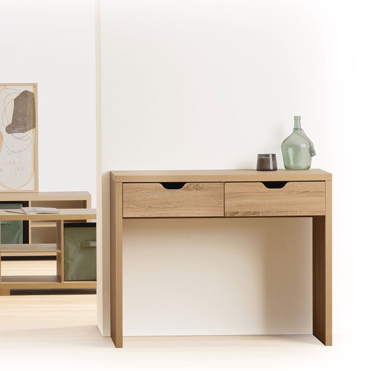 Κονσόλα για το σαλόνι ή για όποιον άλλο χώρο του σπιτιού σας επιθυμείτε. Διαθέτει συρτάρια για να τακτοποιείτε τα πράγματά σας. Συνδυάστε τη με τα υπόλοιπα προϊόντα στο ίδιο σετ για ένα ολοκληρωμένο αποτέλεσμα. Το προϊόν έρχεται αμοντάριστο και περιλαμβάνονται οι οδηγίες συναρμολόγησης.