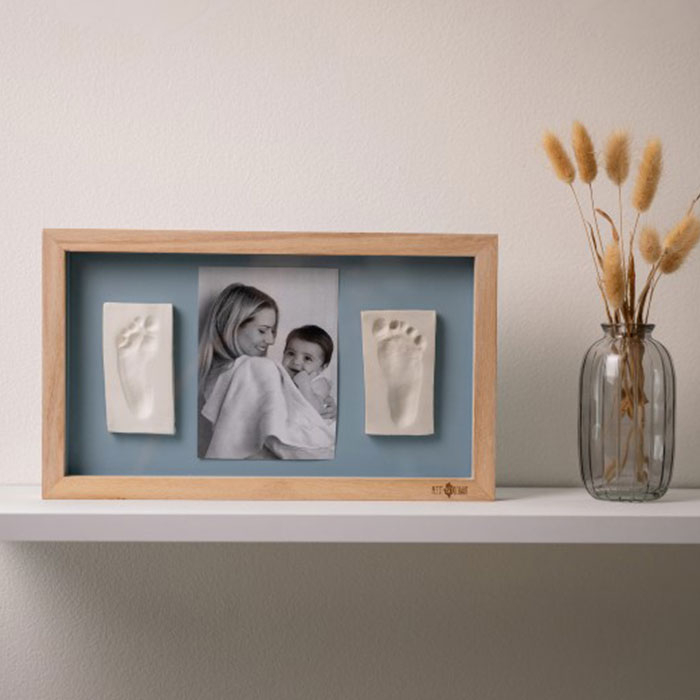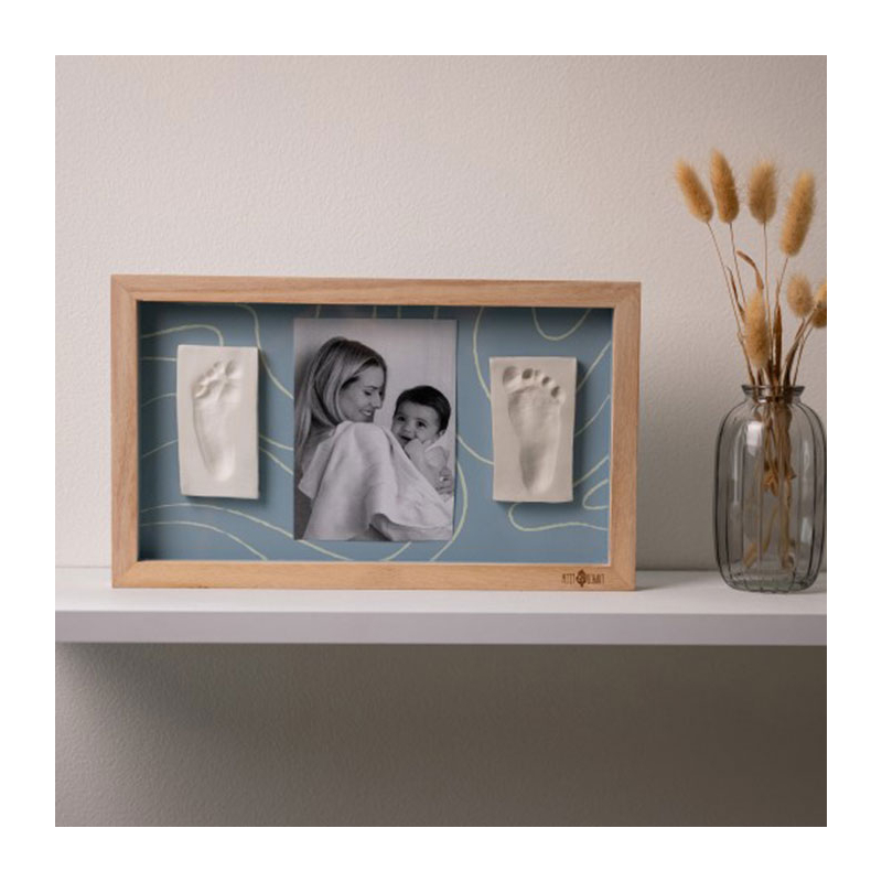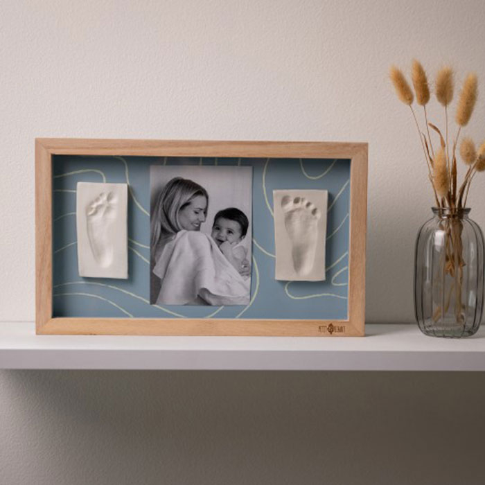 Αποτύπωμα πηλού και κορνίζα από την εταιρεία Petit Artichaut. Σας επιτρέπει να κρατήσετε το πατουσάκι ή το χεράκι του μωρού σας ως ενθύμιο. Ολοκληρωμένο κιτ που περιλαμβάνει κορνίζα με διπλό φόντο για να επιλέξετε ποιο σας ταιριάζει. Υποαλλεργικό πηλό και πλάστη. Επίσης, περιλαμβάνονται οδηγίες για εύκολη δημιουργία του αποτυπώματος. Δημιουργήστε μια γλυκιά ανάμνηση που θα την έχετε για πάντα. Κατάλληλο διακοσμητικό για κάθε βρεφικό δωμάτιο. Ιδανικό δώρο γέννησης, baby shower ή μαιευτηρίου.
