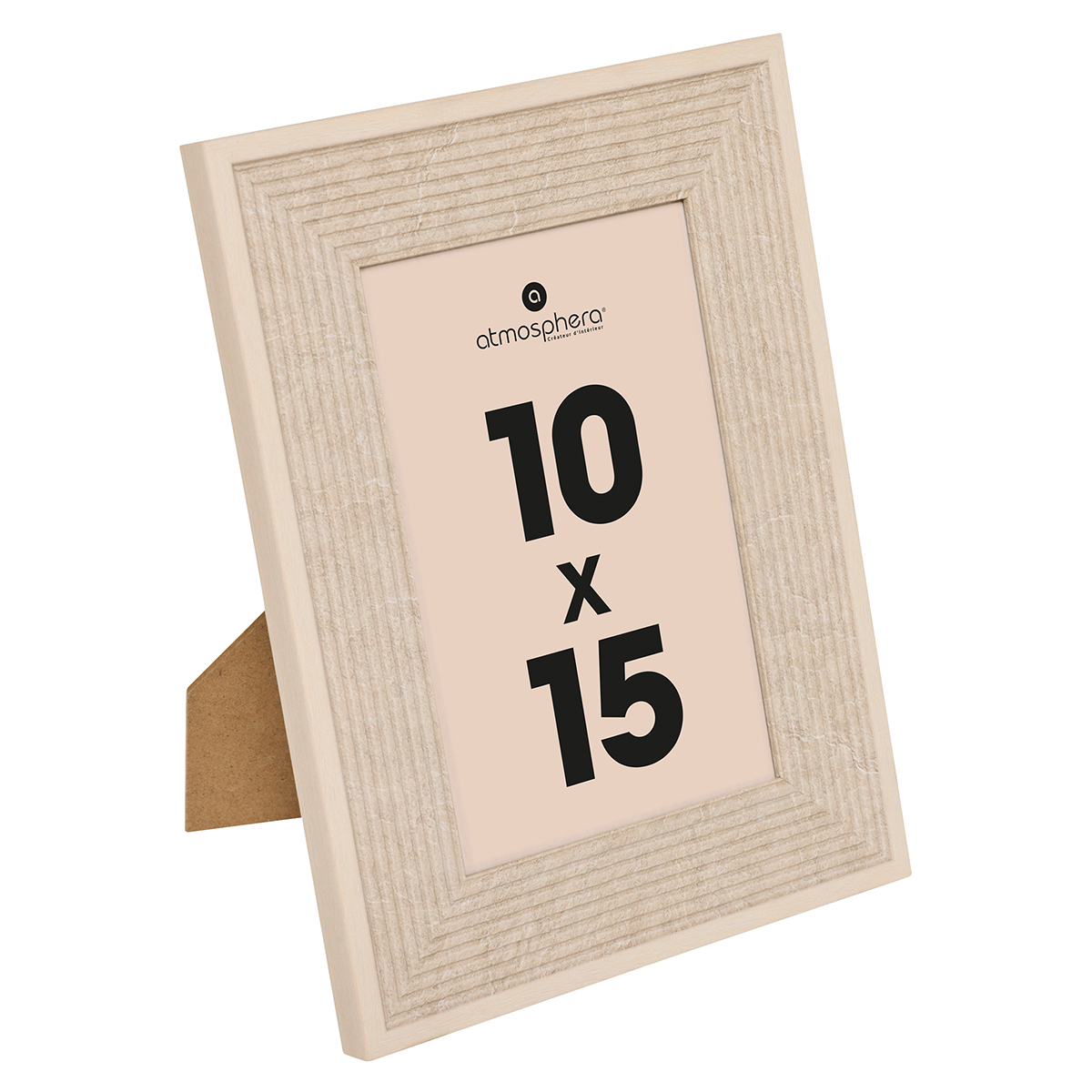 Κορνίζα με μοντέρνο σχεδιασμό. Είναι κατασκευασμένη από ξύλο MDF_E1 σε μπεζ χρώμα με εφέ πέτρας και γυαλί στο μπροστά μέρος. Κατάλληλη για τοποθέτηση στον τοίχο ή σε κάποιο έπιπλο σε κάθετη ή οριζόντια μορφή. Ιδανική για να φυλάξει τις πιο όμορφες αναμνήσεις σας. Για Φωτογραφία 10x15εκ.