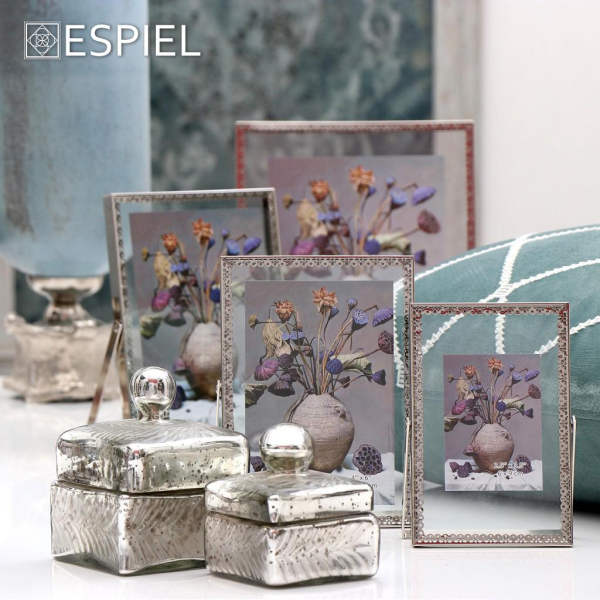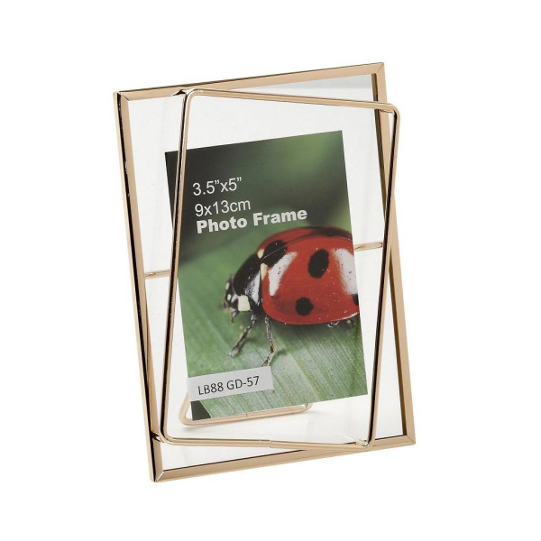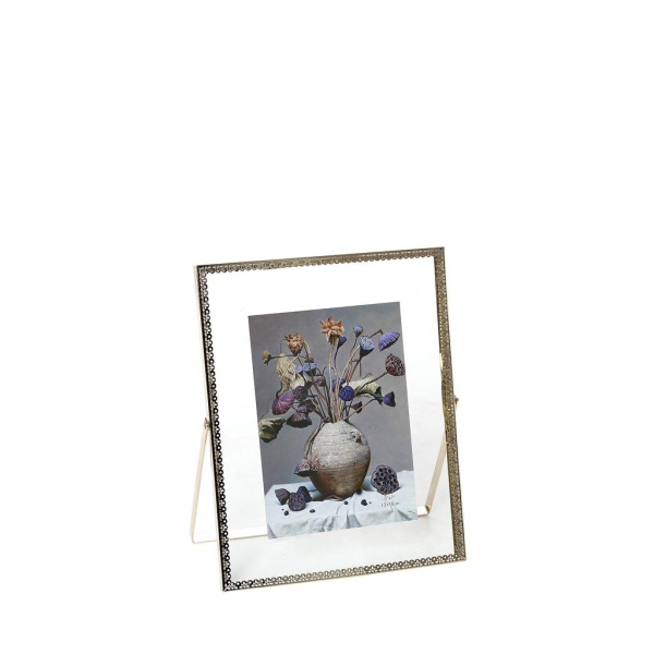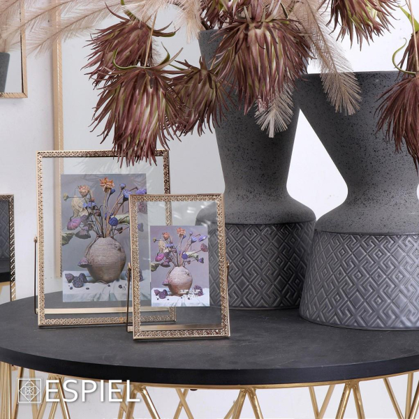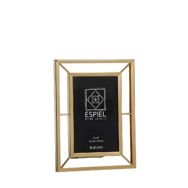 Κορνίζα επικαθήμενη από την εταιρεία Espiel, σε χρυσό χρώμα και αντικέ ύφος. Ο σκελετός είναι μεταλλικός και διαθέτει και γυαλί για την προβολή της φωτογραφίας.