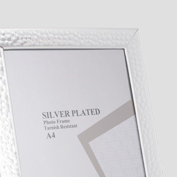 Κορνίζα από την εταιρεία Estheti σε ασημί χρώμα με μοντέρνο σφυρήλατο σχέδιο. Είναι κατασκευασμένη από μεταλλικό υλικό. Η κορνίζα είναι επικαθήμενη. Η επικαθήμενη σχεδίαση της δίνει την δυνατότητα να τοποθετηθεί εύκολα σε οποιοδήποτε τραπέζι ή επιφάνεια. Φυλάξτε τις πιο ξεχωριστές στιγμές της ζωής σας σε μια μοναδική κορνίζα.