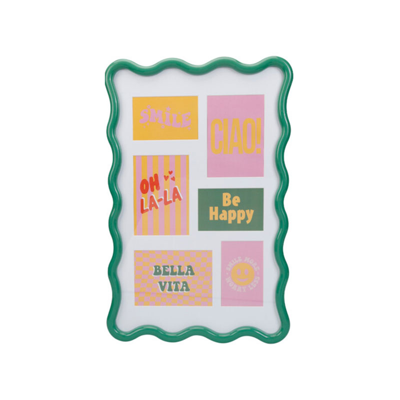 Πολυκορνίζα τοίχου 6 θέσεων με μοντέρνο σχεδιασμό. Είναι κατασκευασμένη από ανθεκτικό πλαστικό υλικό σε πράσινο χρώμα. Έχει 6 θέσεις για φωτογραφίες μεγέθους 10x15. Μια καλαίσθητη επιλογή που αναδεικνύει τις αγαπημένες σας στιγμές.