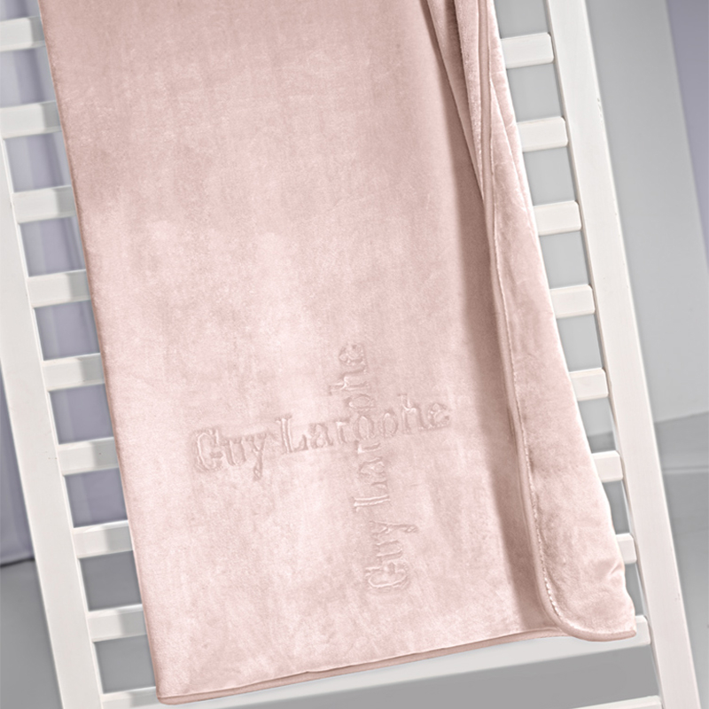 Κουβέρτα βελουτέ για την κούνια του μωρού σε ροζ χρώμα από την εταιρεία Guy Laroche. Είναι κατασκευασμένη από 100% polyester που την καθιστά πολύ απαλή και ζεστή. Ιδανική για τους φθινωπορινούς και χειμερινούς μήνες.