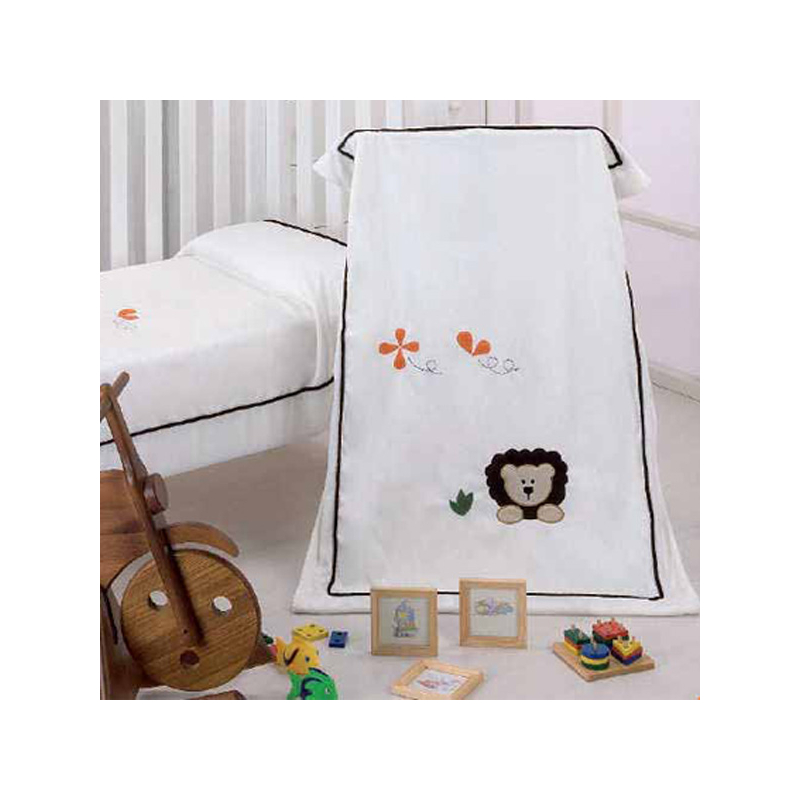 Βρεφική βελουτέ κουβέρτα ισπανικής προέλευσης για την κούνια του μωρού από την εταιρεία Morven. Είναι κατασκευασμένη από 100% ακρυλικό βάρους 540 γραμ./τ.μ. Έχει εκρού χρώμα με σχέδιο ζωάκια και καφέ λεπτομέρειες κατάλληλη για κοριτσάκια και αγοράκια. Ιδανική για τους χειμερινούς μήνες. Συσκευασία κουτί.