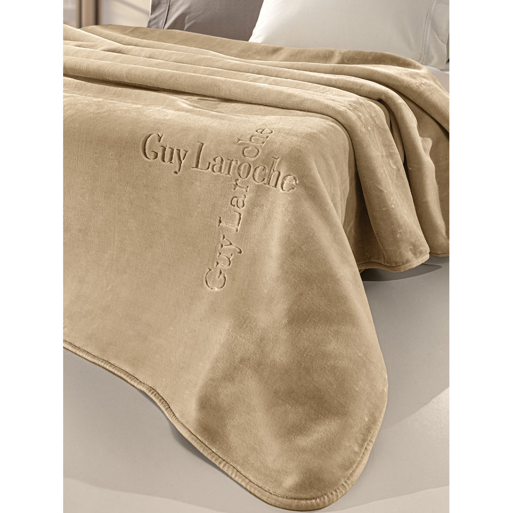Κουβέρτα Βελουτέ Μονή (160x220) Guy Laroche Logo Almond
